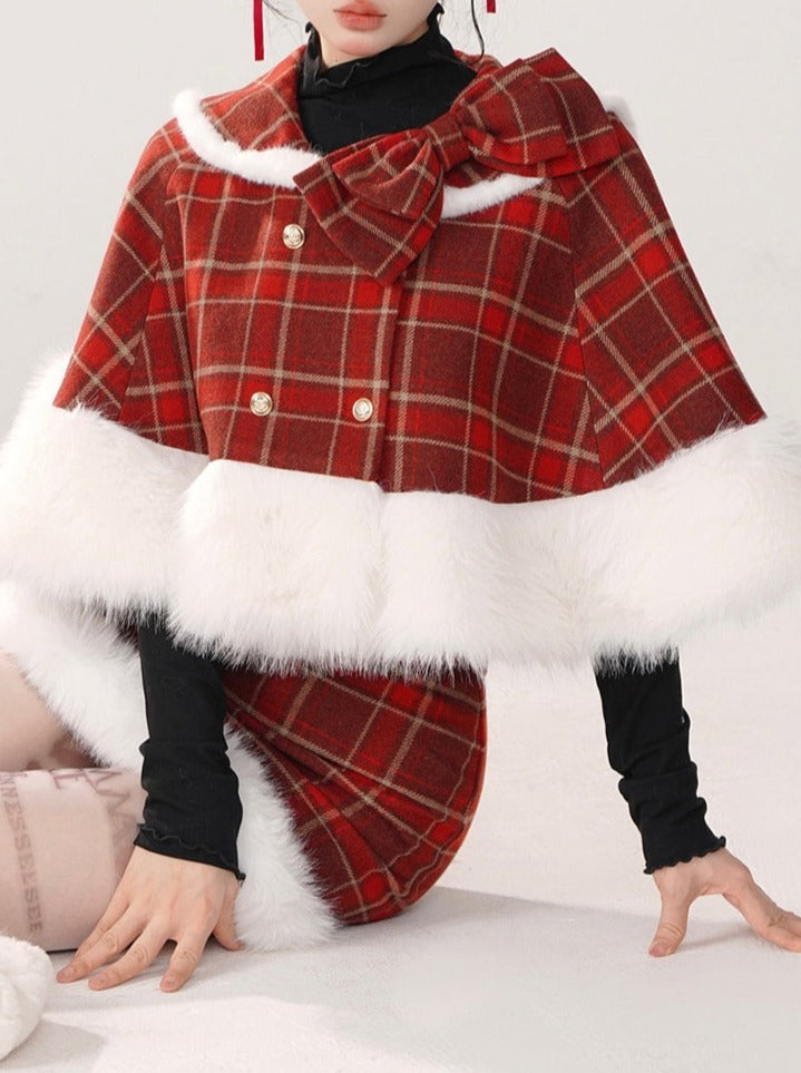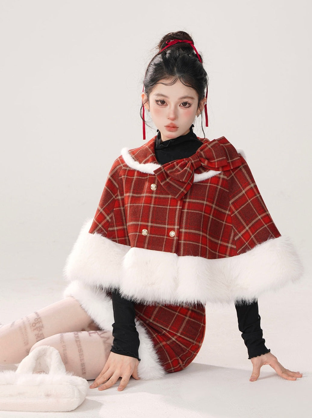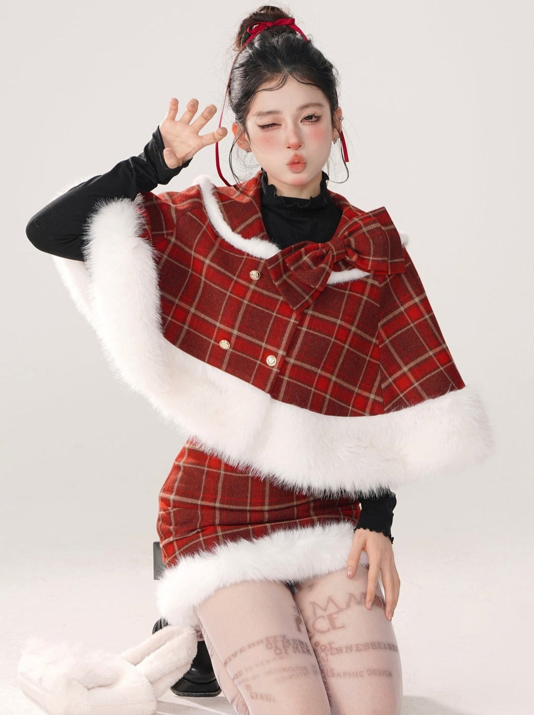キュートで着心地抜群のチェックファーマントとチェックスカートのセットで、スタイリッシュに過ごしましょう!どんなシーンにもぴったりの、チェック柄のファーマントとスカートが可愛いこのセットは、おしゃれでありながら暖かさもキープ。この魅力的な一着をお見逃しなく!