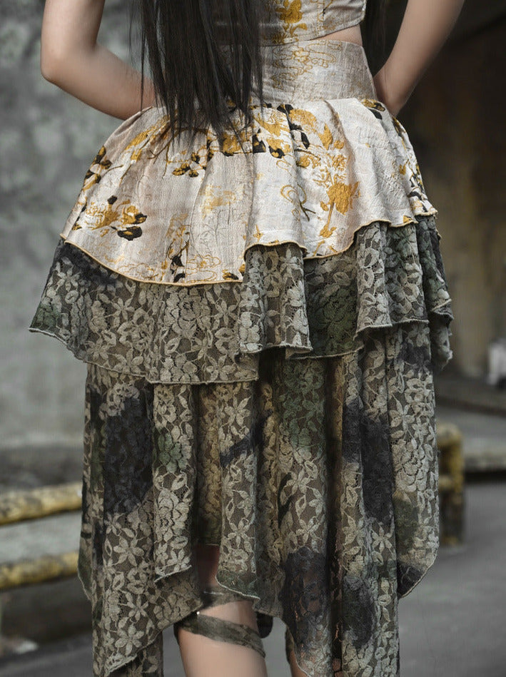 シェニールジャカードチャイナスカートレースイレギュラー