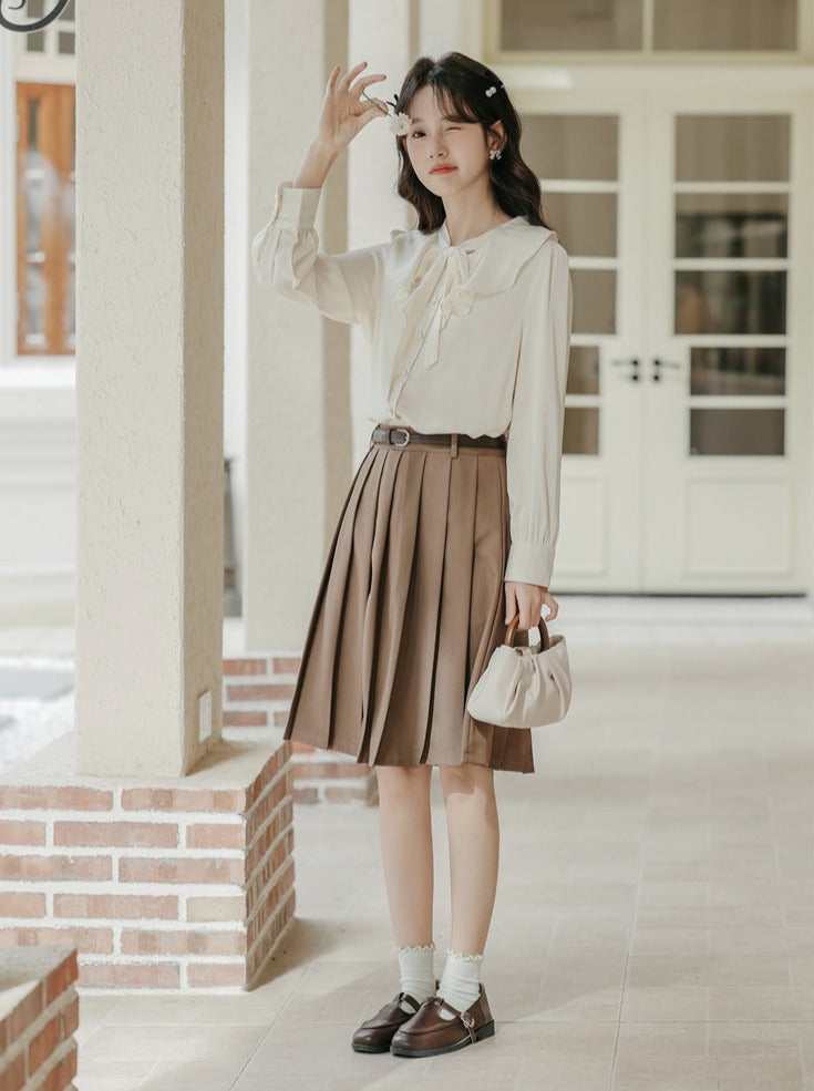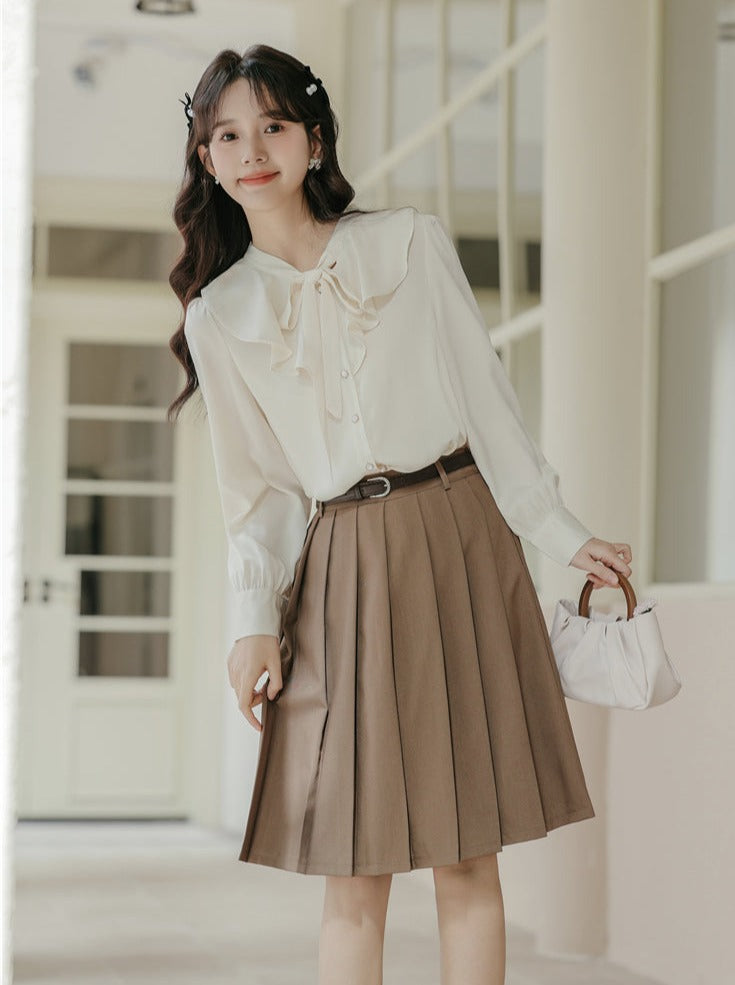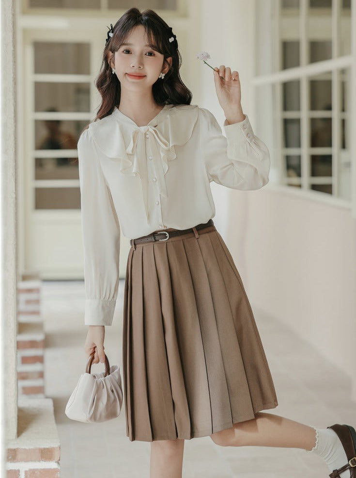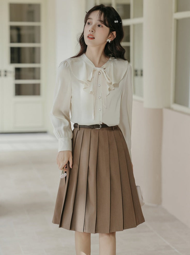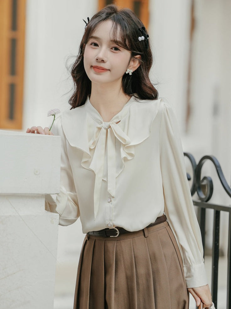 繊細なシフォン生地にフレンチラッフルのディテールを施した、レトロな雰囲気が魅力のシックなシャツ。どんな装いにも可愛らしさをプラスしてくれます。
