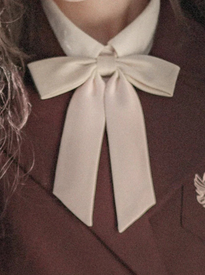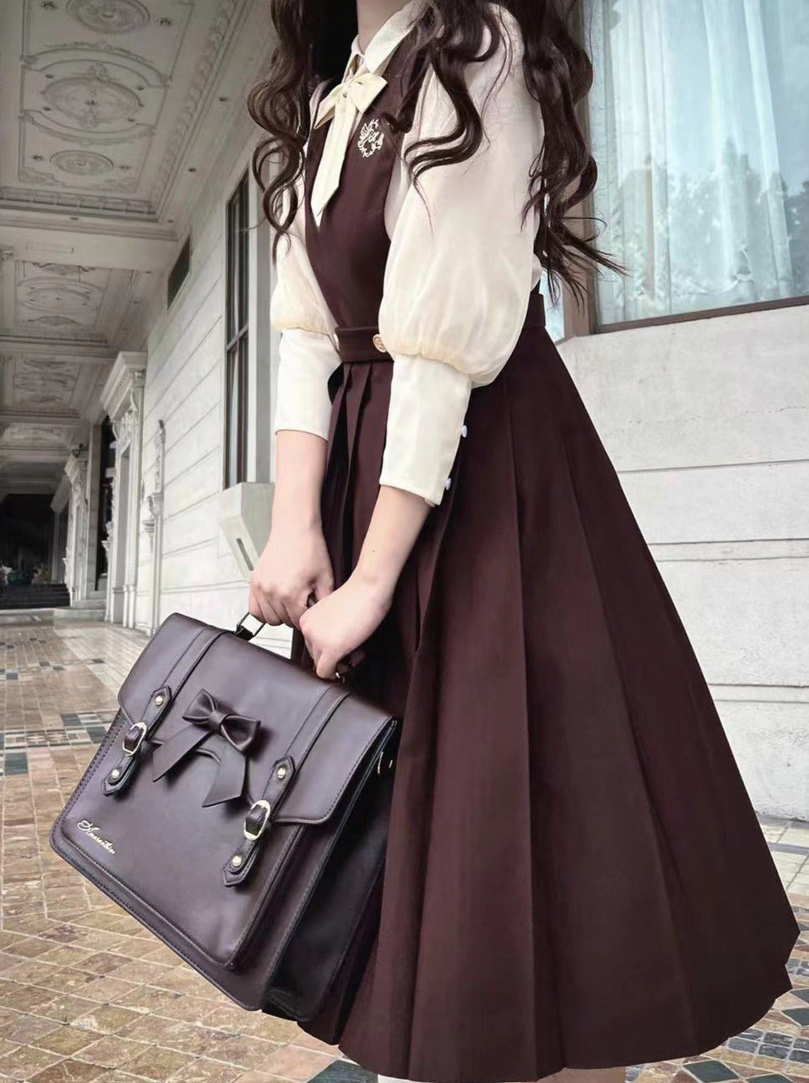 シフォンスカートスタイル リボンインナーアクセサリー Vネック クリームシャツ カレッジベスト