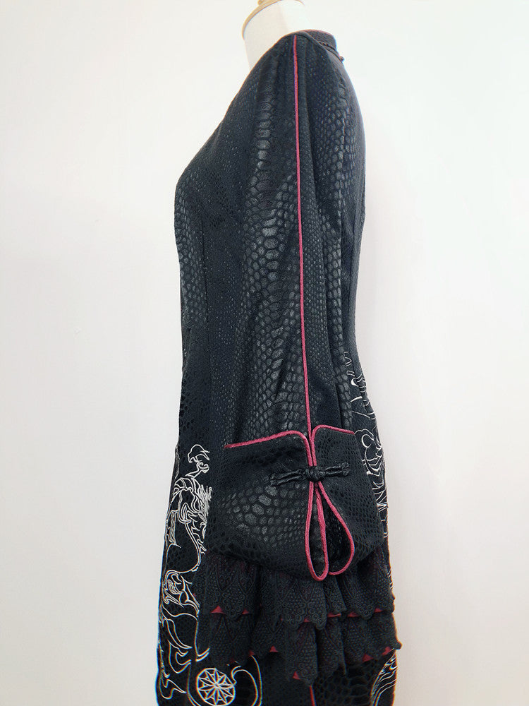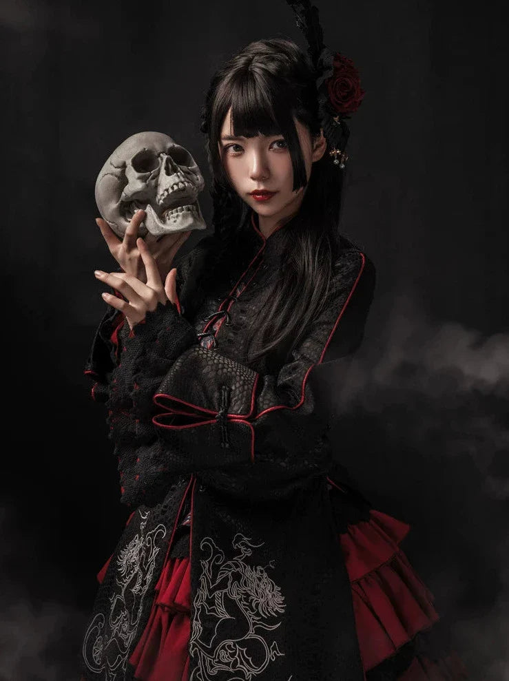 キュートでスタイリッシュな装いをお探しですか?チャイナロリィータゴゴシックケープセットはもう探す必要はありません!ロングジャケット、キャミソール、スカート、ウエストバンドがセットになったこのセットは、どんなスタイルにもキュートさをプラスしてくれます。コスプレ、ハロウィン、普段使いにもぴったりです。