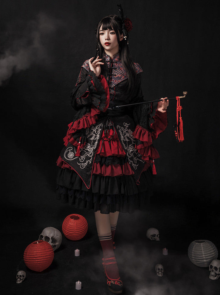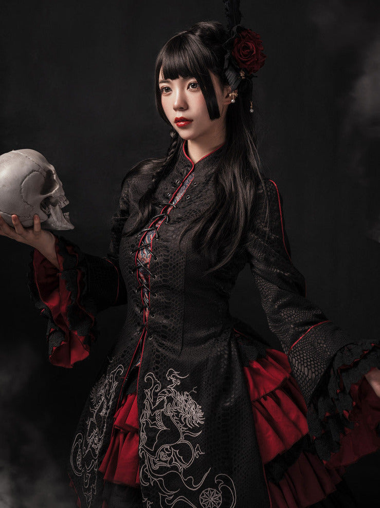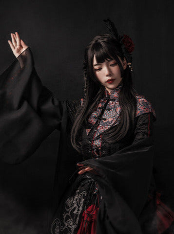 チャイナロリータゴゴシックケープ+ロングジャケット+キャミソール+スカート+ウエストバンド