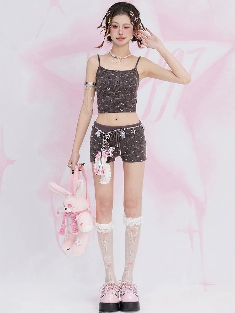コーヒーリボン総柄プリントショートパンツ