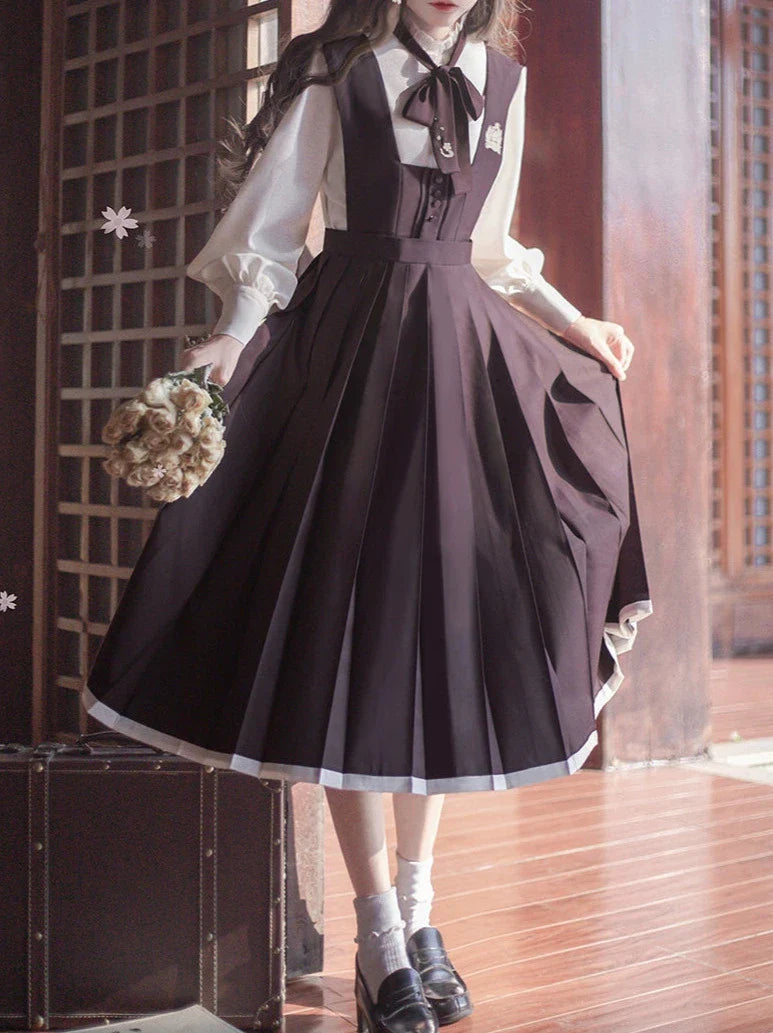 黒と白のオールドスクールロリータファッションドレス蝶結びロリータJSKセット