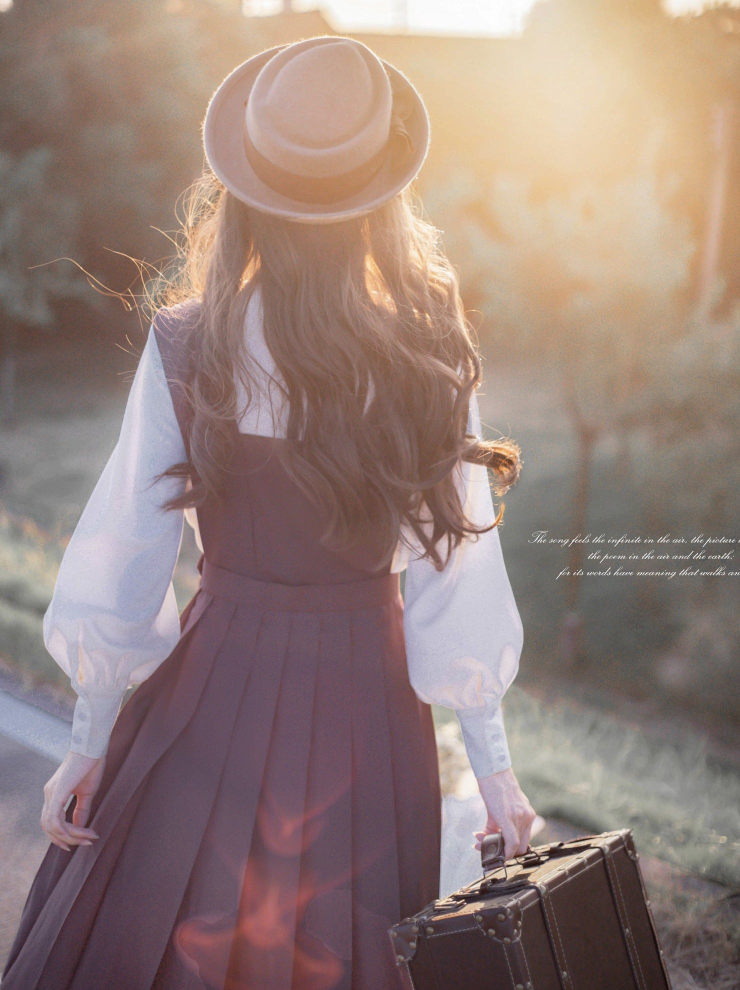 青と白のオールドスクールロリータファッションドレス 蝶結びディテール JSK セット