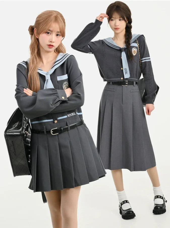 グレーのトップスドレスセーラー+カレッジニットセーラースタイル
