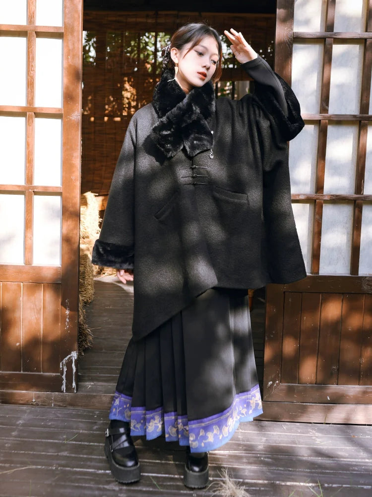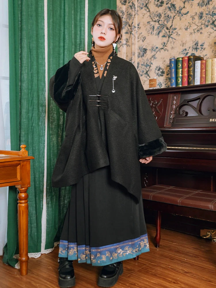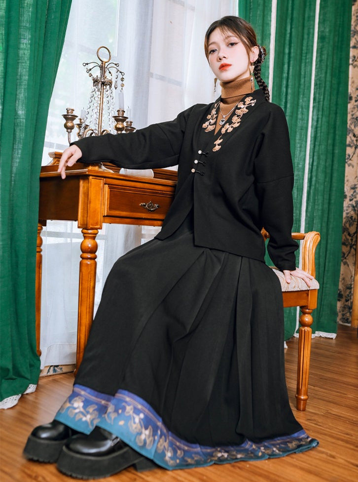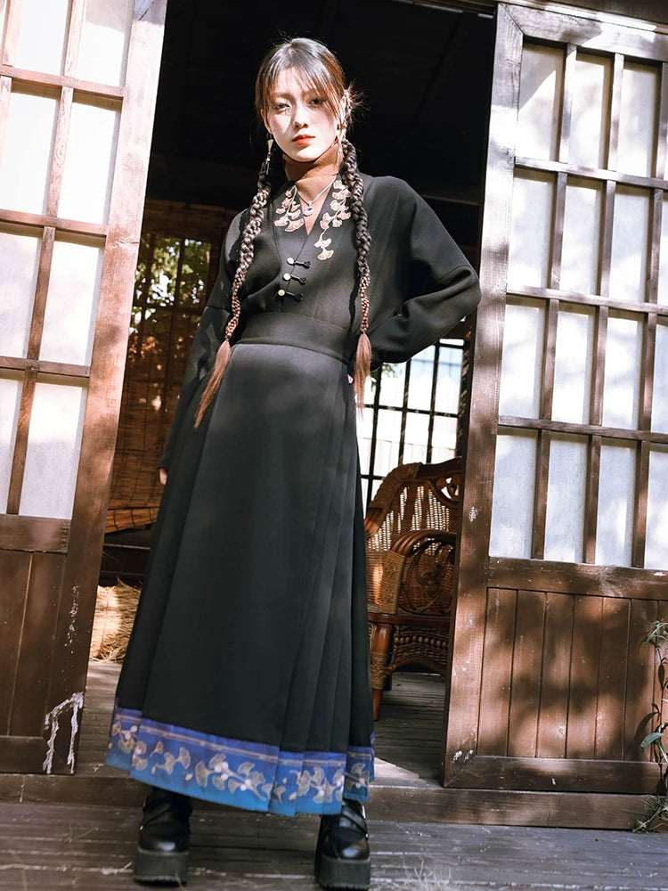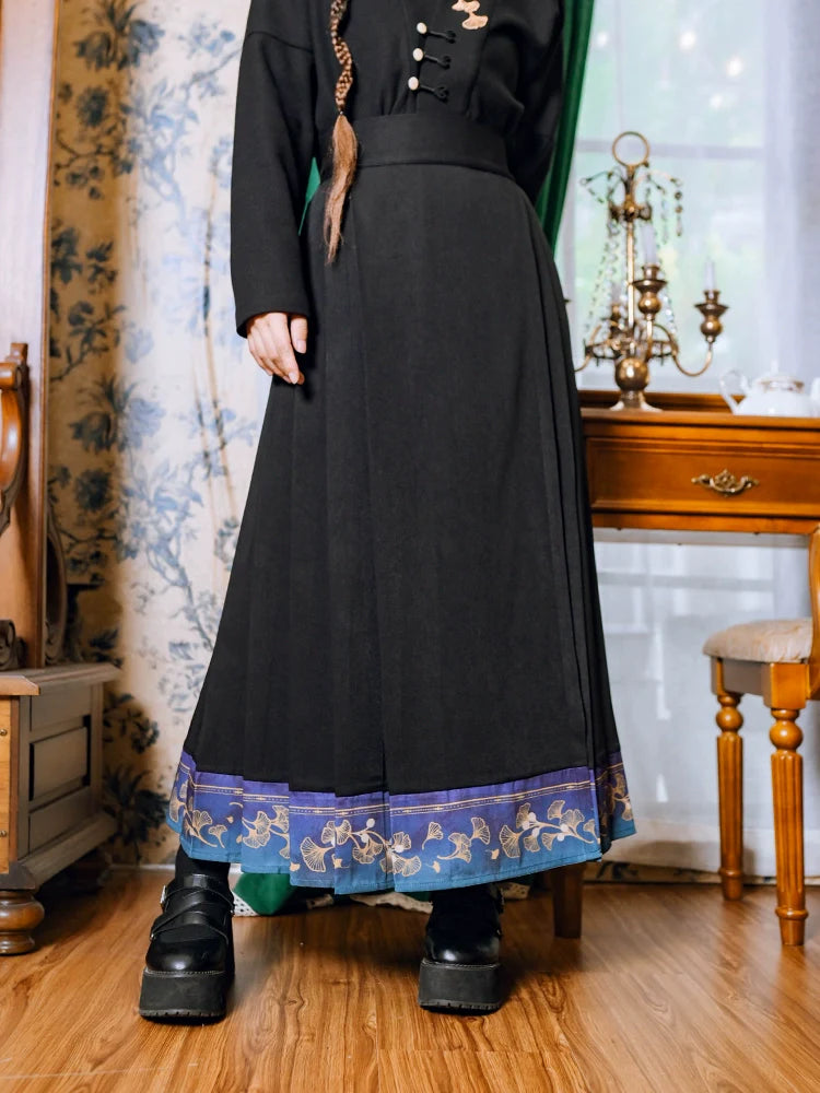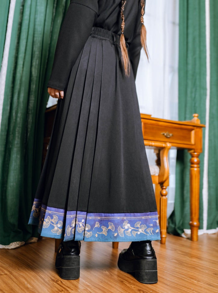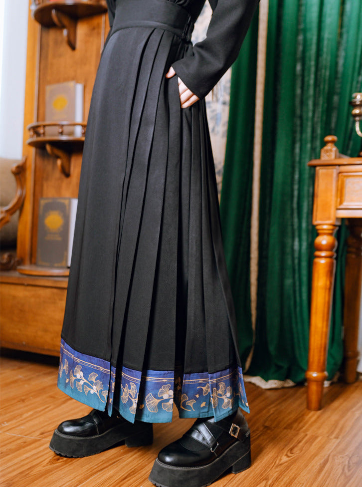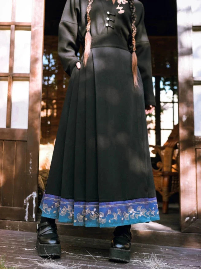 コントラストレトロカラーチャイナプリーツスカートリーフ