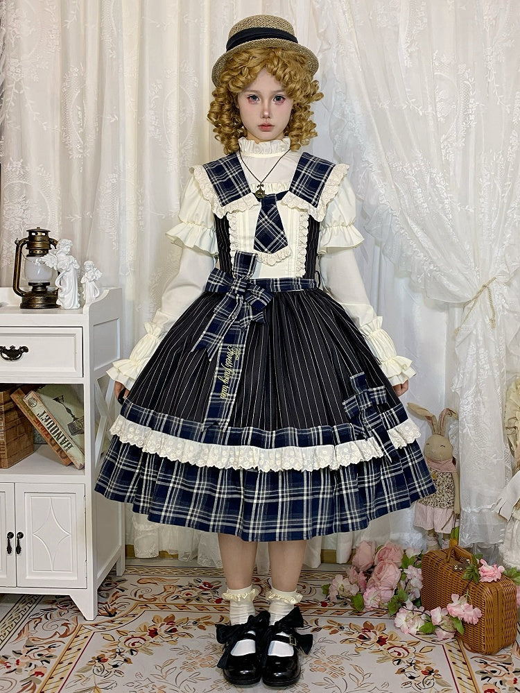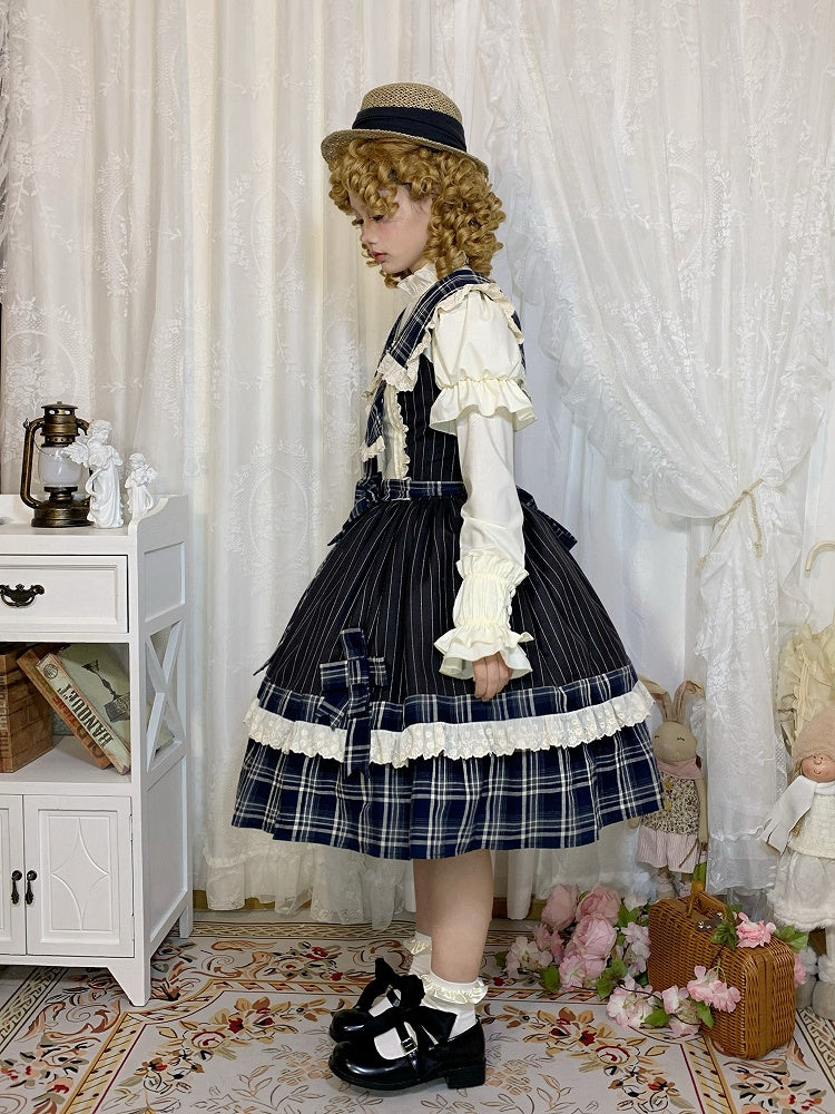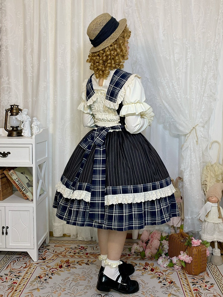 青と白のオールドスクールロリータファッションドレス 蝶結びディテール JSK セット