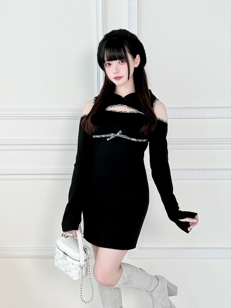 黒と白のオールドスクールロリータファッションドレス蝶結びロリータJSKセット