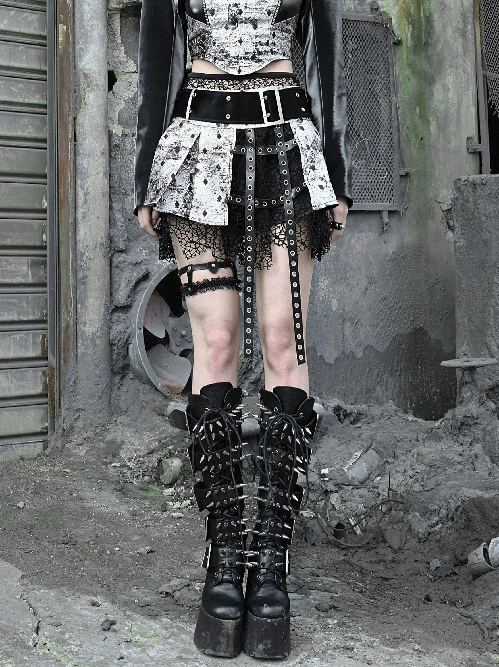 ユニークなフィッシュネットデザインと流れるようなプリーツが特徴のキュートなミニスカートは、どんなコーディネートにもエッジの効いたアクセントを添えます。パンクゴシックスタイルは、あなたの内なる反骨精神を引き出しながらも、どんなシーンにも合わせやすい万能アイテム。この楽しくてセクシーなミニスカートで、遊び心を満喫してください。