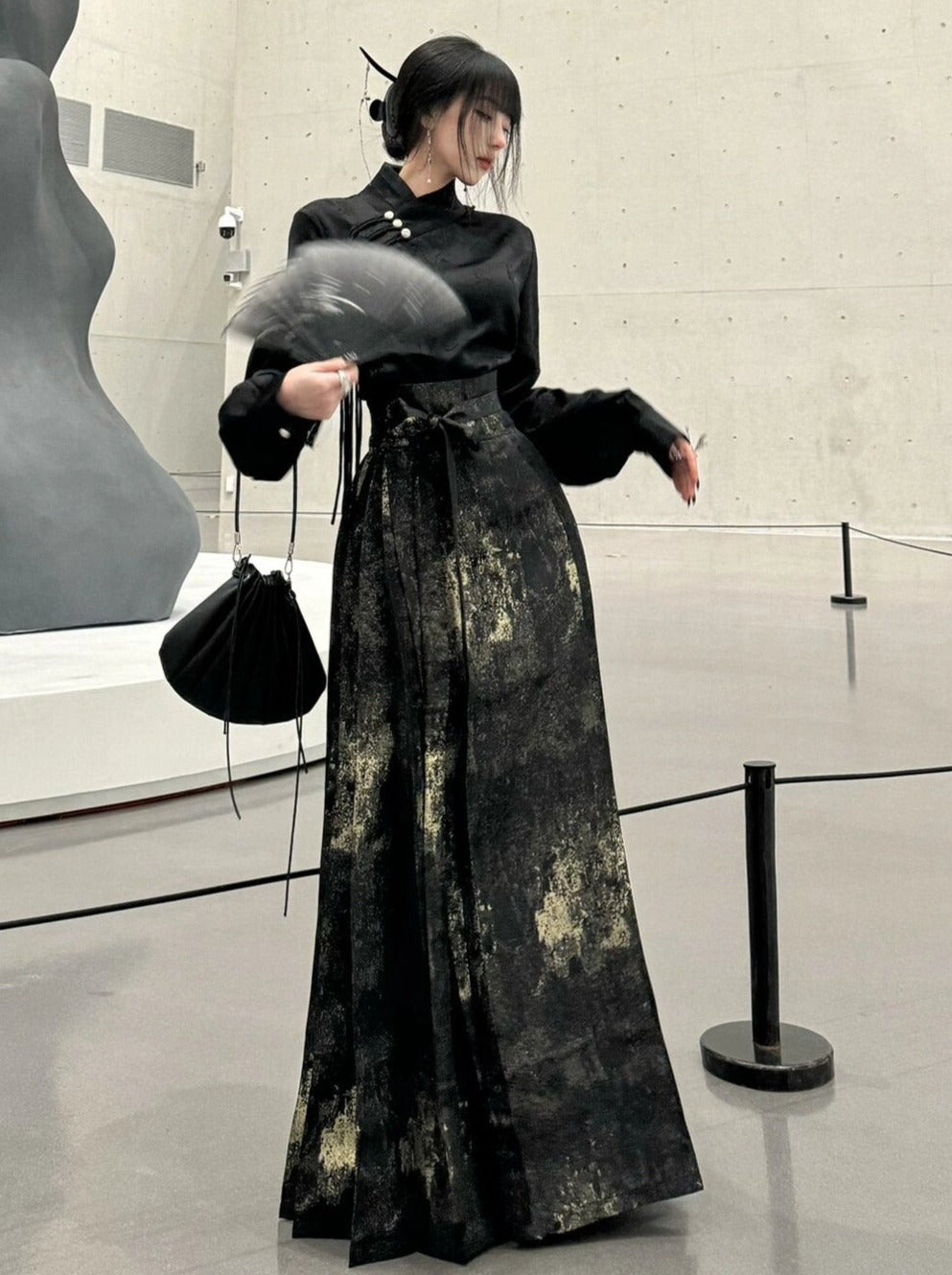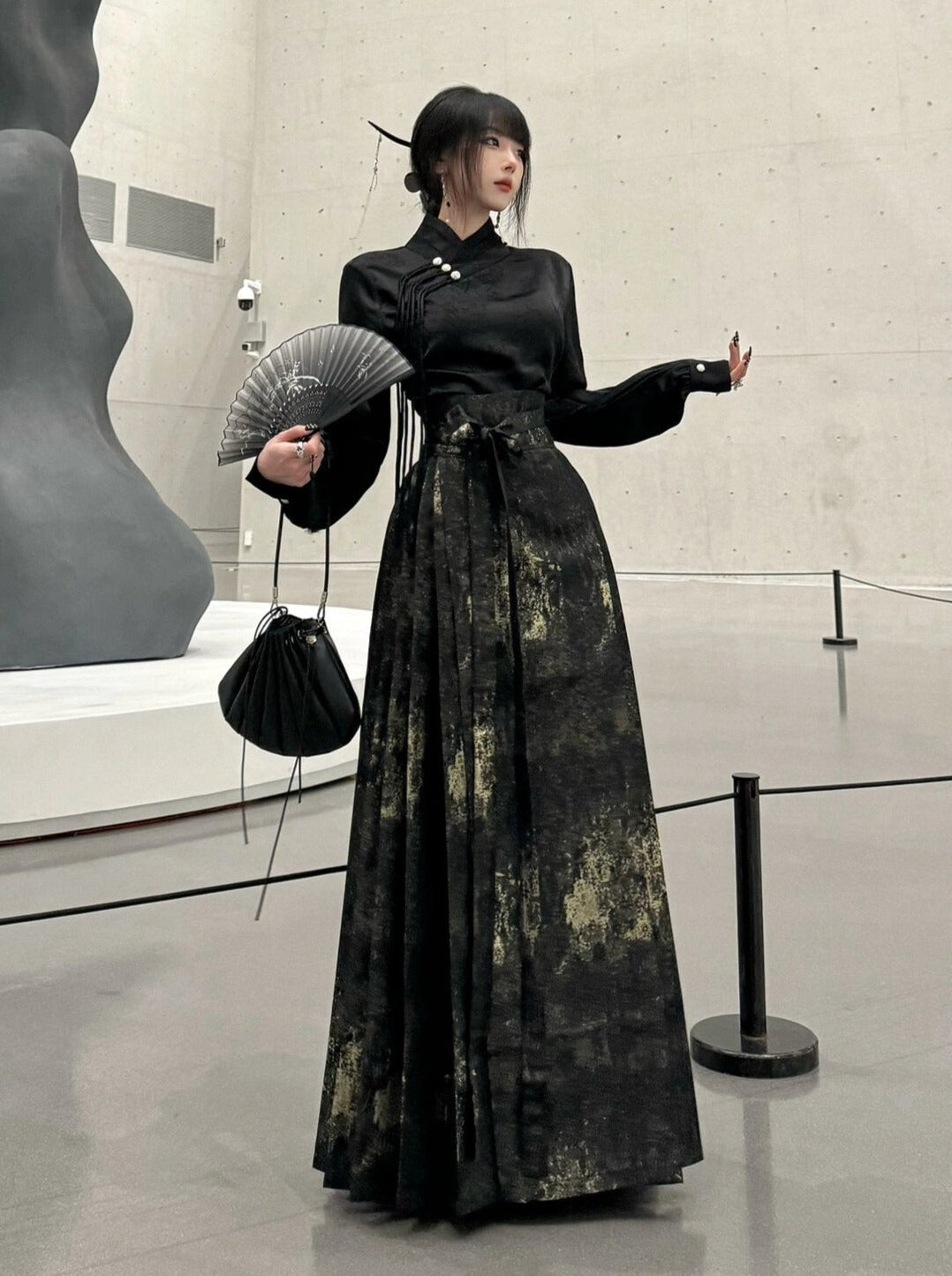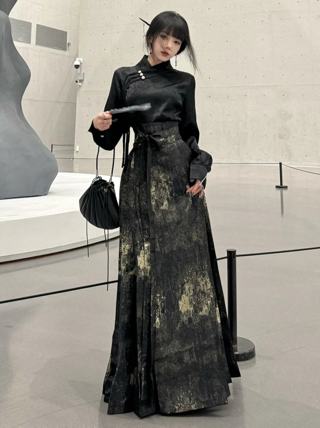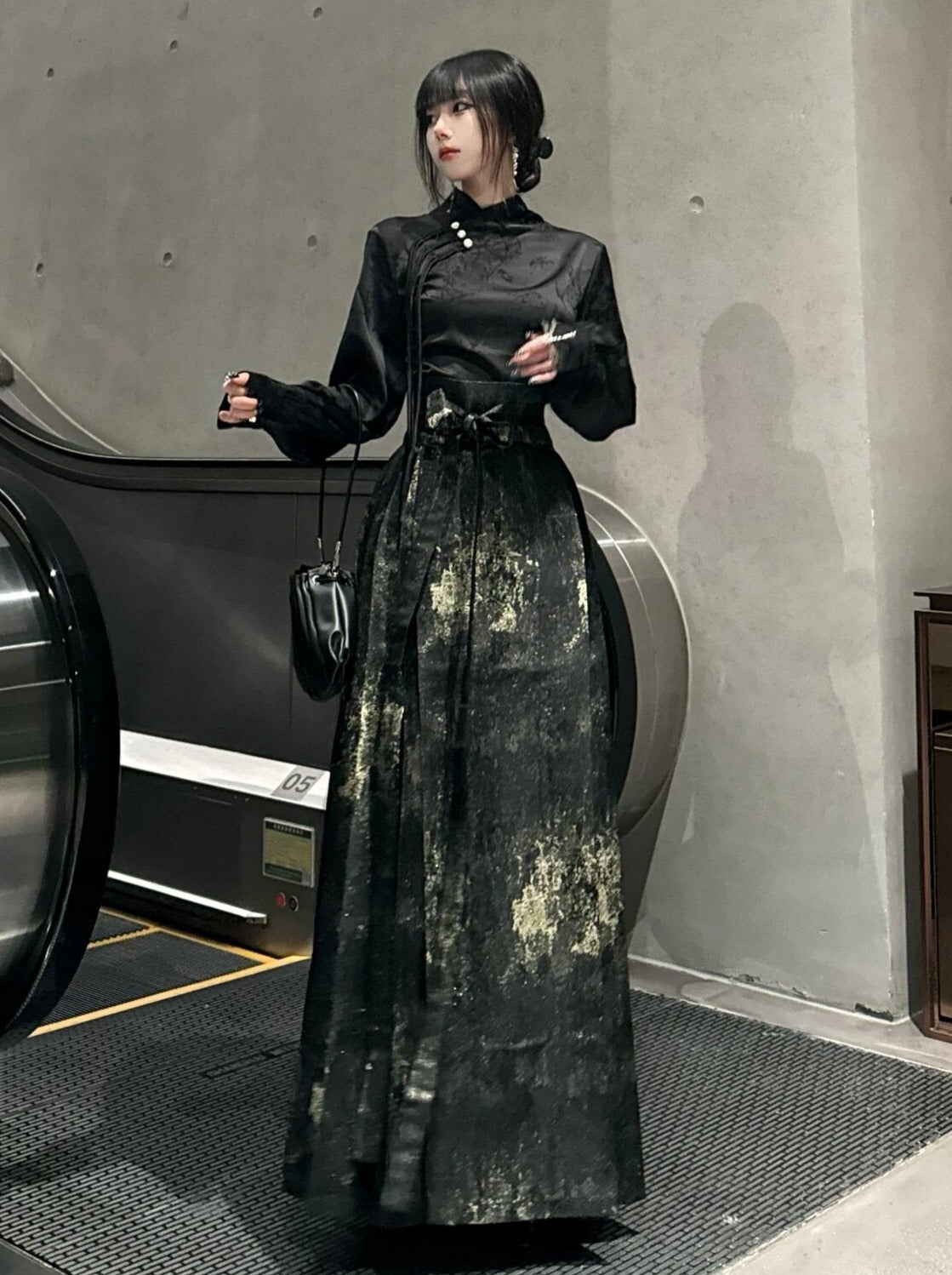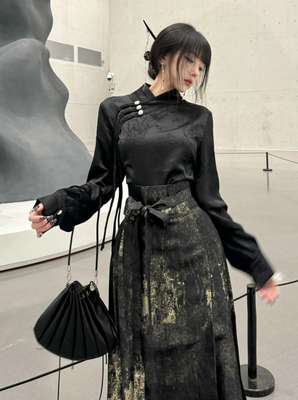 ダークチャイナブラウスとロングスカートのセットで、エレガンスと魅力が完璧に融合した装いを。伝統的な中国のデザインと贅沢な生地をあしらったこのセットは、あなたを美しく自信に満ちた気分にさせてくれます。愛らしい色合いで、あなただけの個性的なスタイルを披露しましょう。