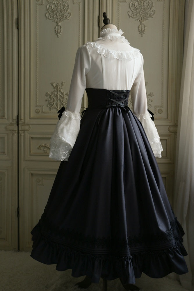 ボーン入りのコルセットベルトでウエストを絞ったエレガントなスカートは、ハイウエストのシルエットを美しく演出します。ダークグレーのカラーが洗練された雰囲気を添え、ロリータ風のデザインがキュートでチャーミングな雰囲気を添えます。どんなシーンにもぴったりのこのスカートは、自信とスタイリッシュさを与えてくれます。