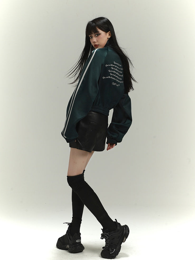 ダークグリーンの文字刺繍Acubiファッションヴィンテージベースボールジャケット