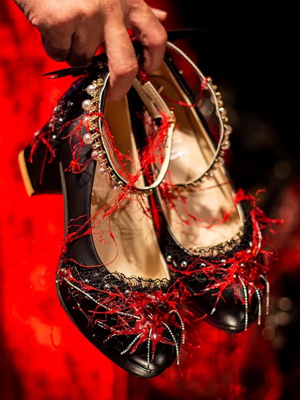 ブルー&レッド ゴシックロリータ ハート装飾 スパイダーデザイン ビーズチャーム 5CM/8.5CM ブロックヒールシューズ