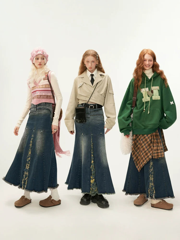 デニムマーメイドレトロスカートで、華やかな装いを演出しませんか?クラシックなデニムスタイルと、楽しくてセクシーなマーメイドフレアが融合した、愛らしいスカートです。どんなシーンにもぴったりのこのスカートを着れば、一日中キュートで自信に満ちた気分になれるはずです。