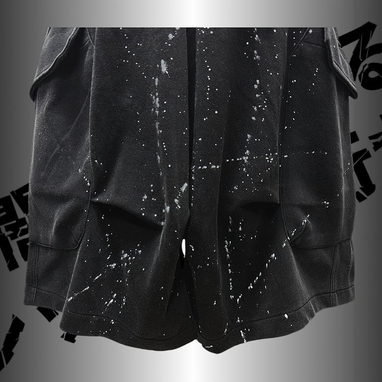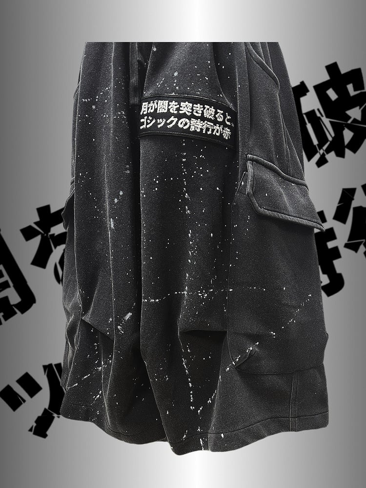 ブラック アシンメトリー プリントデザイン ウェイストランド パンク ワイドレッグ カーゴパンツ