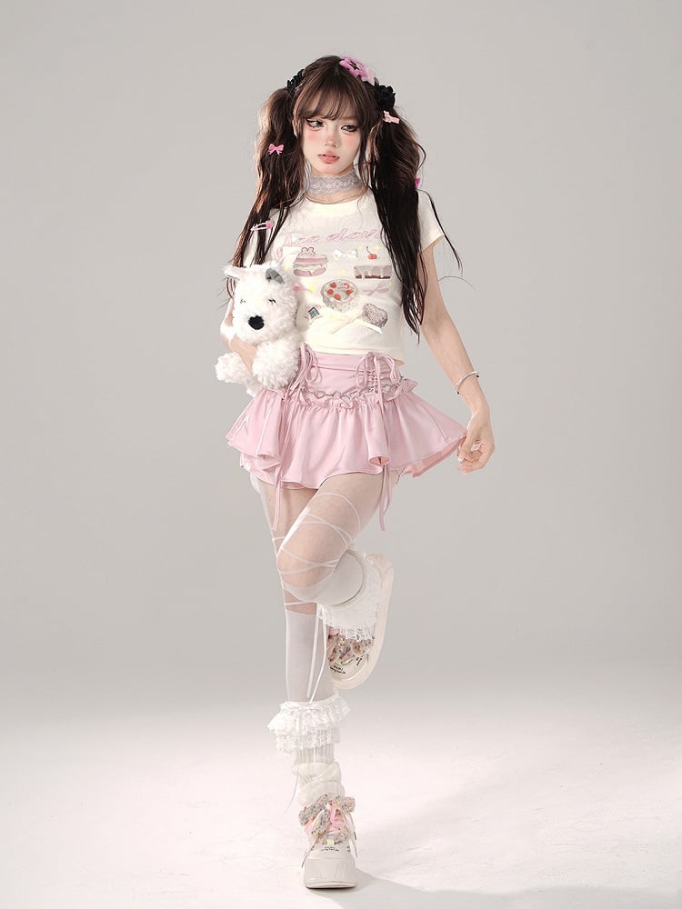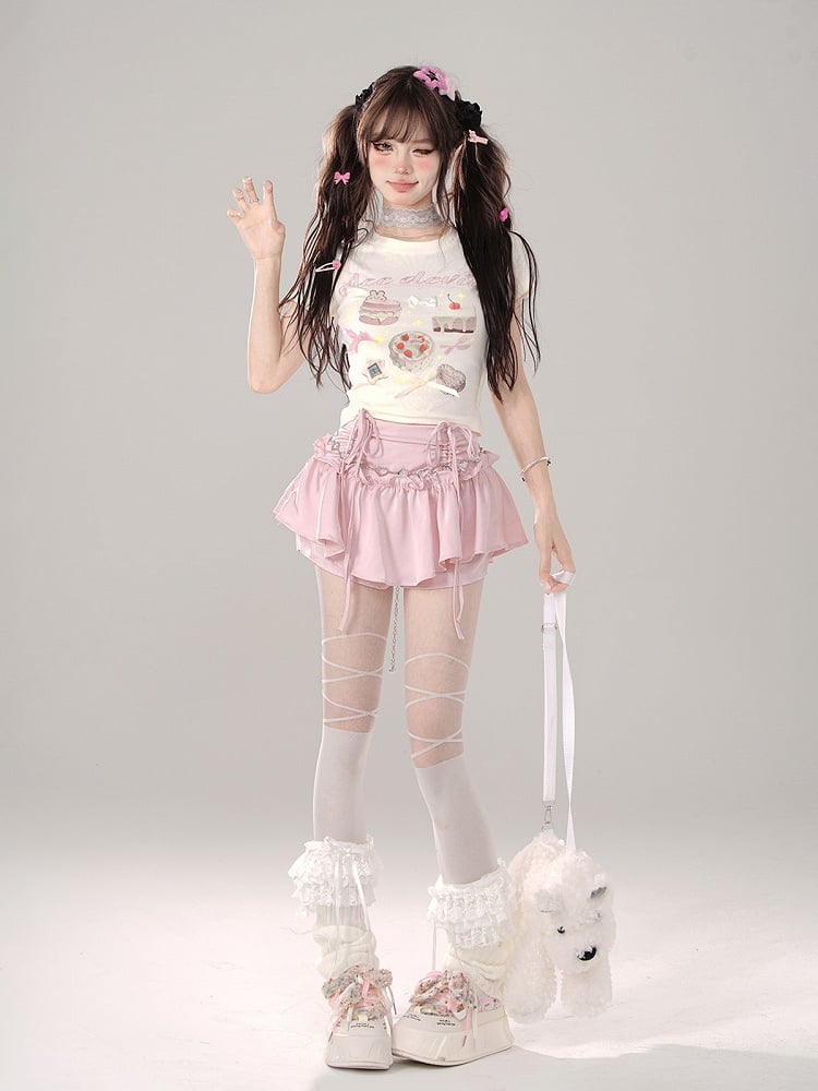 Apricot Sweet Treats Graphic Fitted T-shirt with Bowknot Details