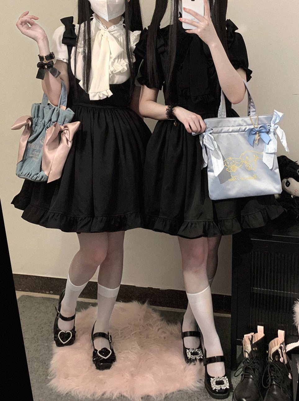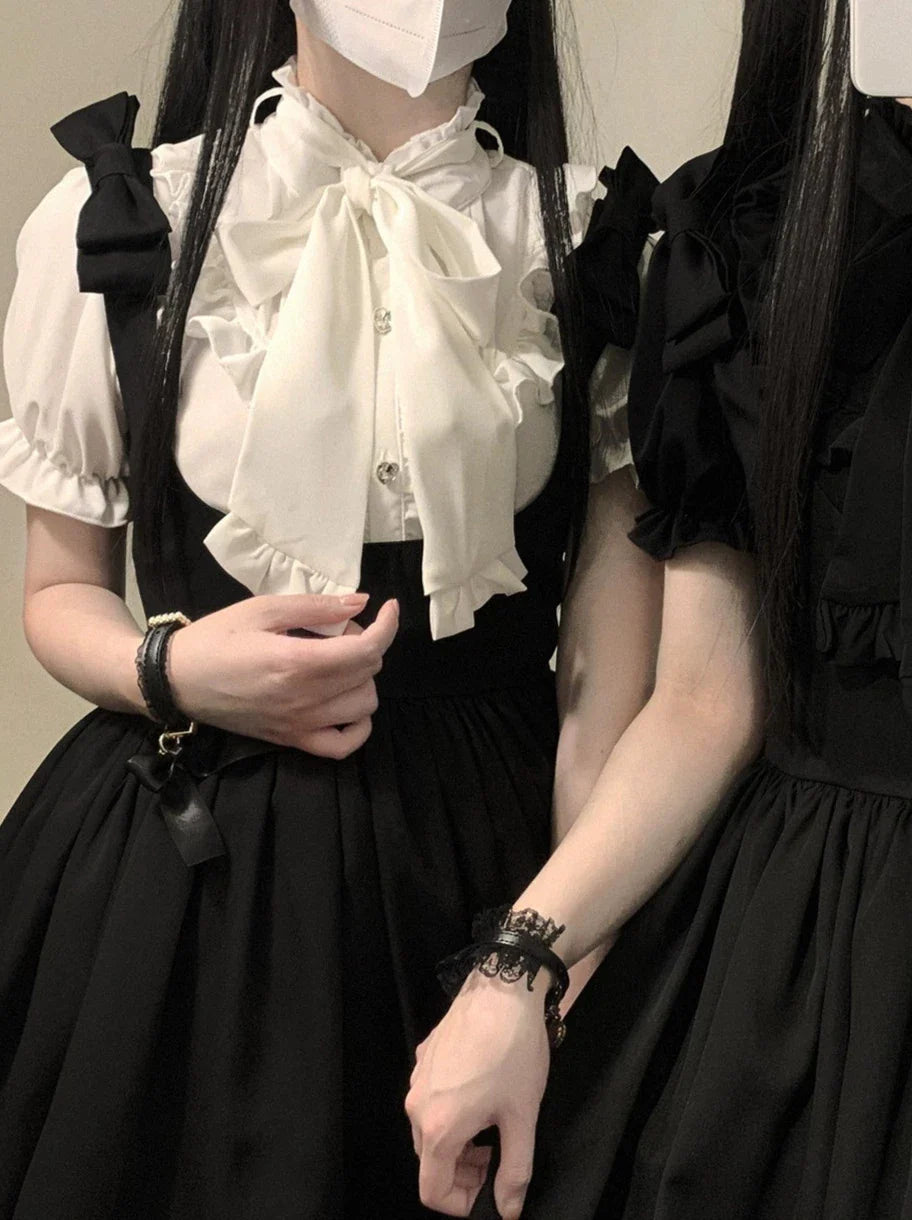 黒と白のオールドスクールロリータファッションドレス蝶結びロリータJSKセット
