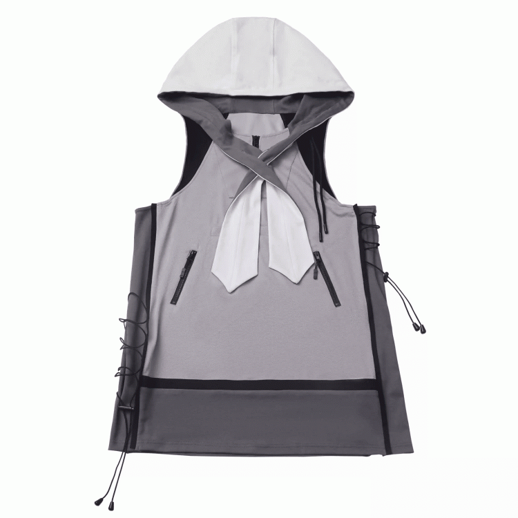 ドレスサイドテックウェアフード付きベストグレーカラーブロックデザインドローストリング