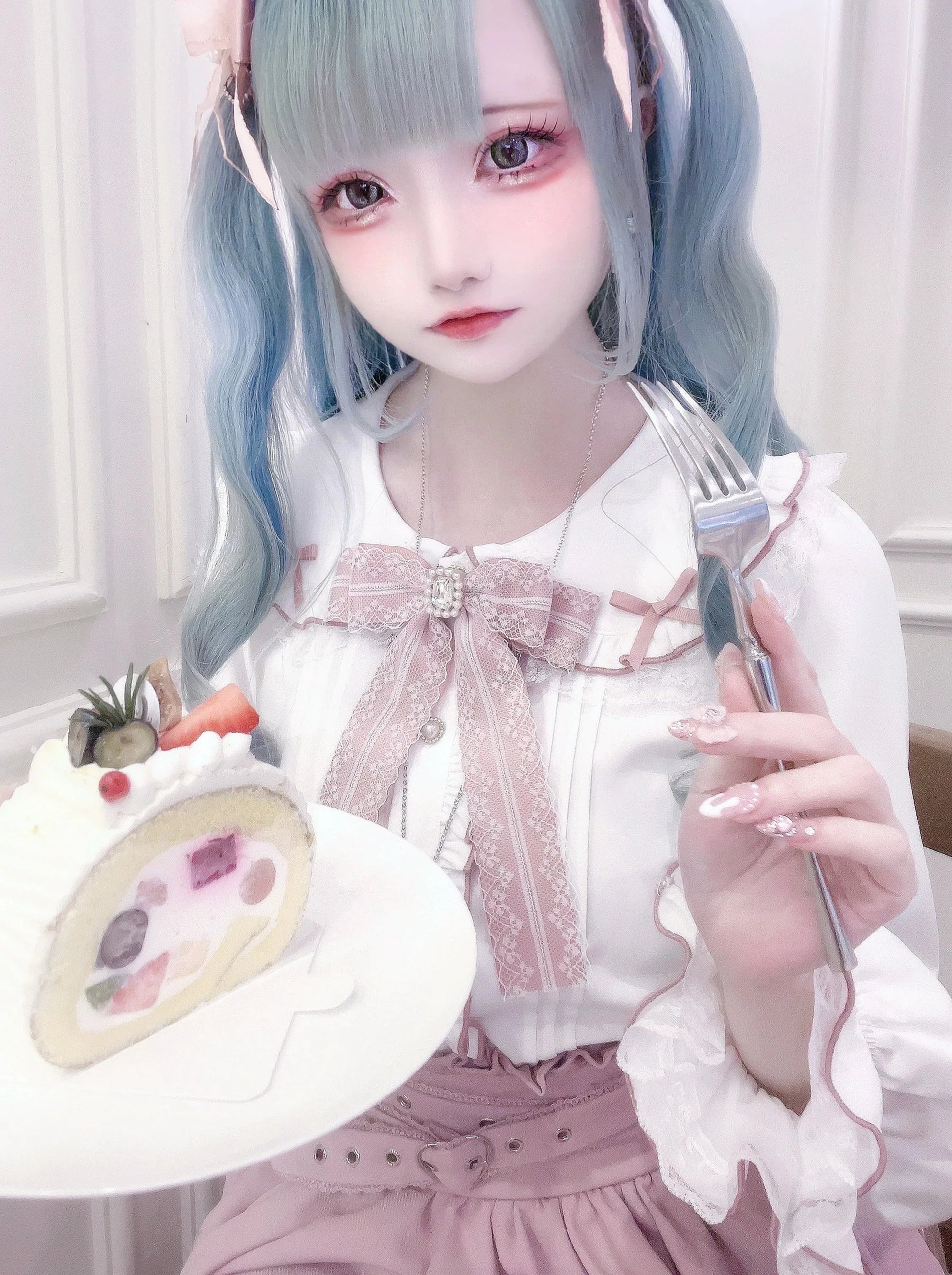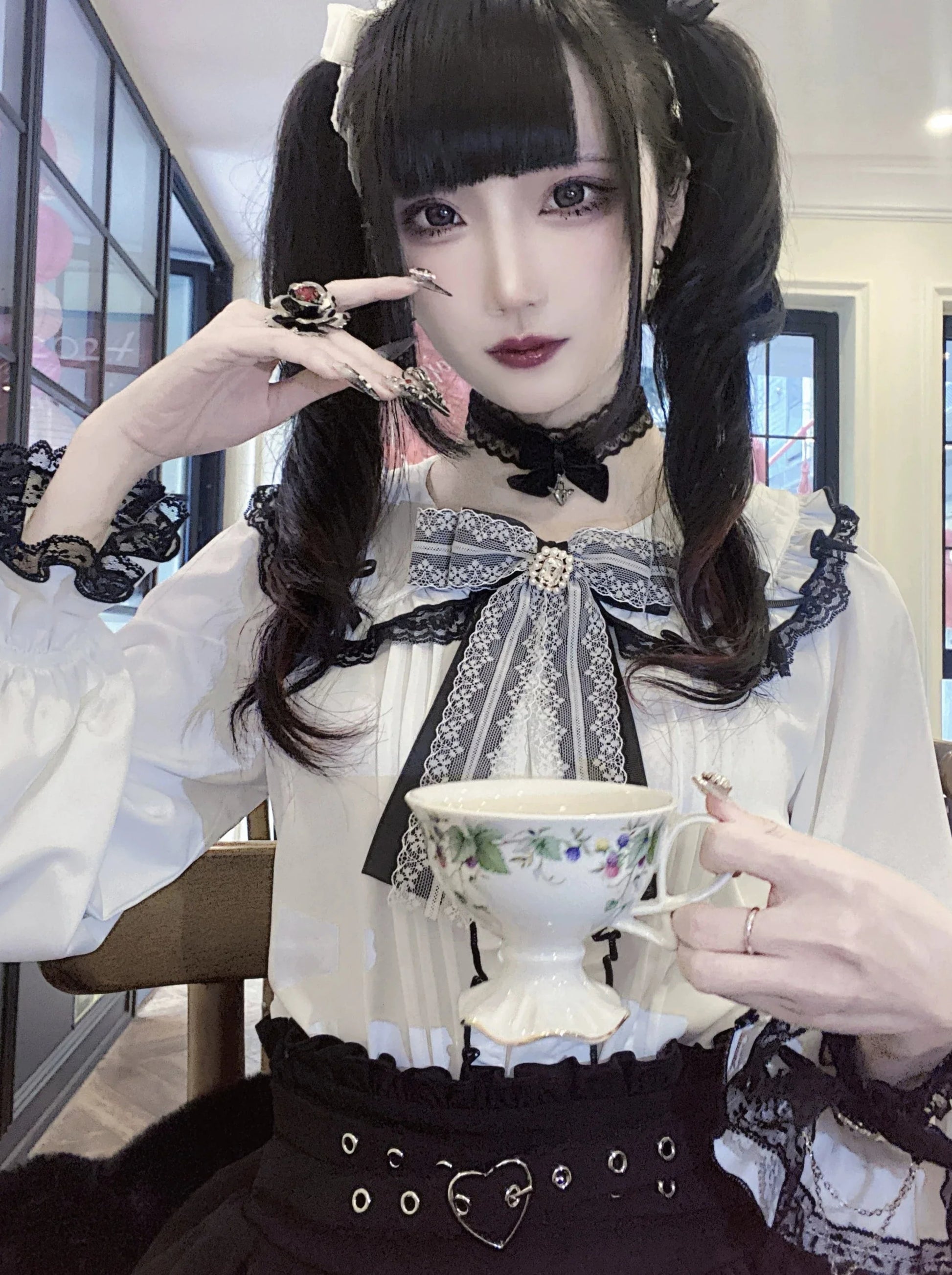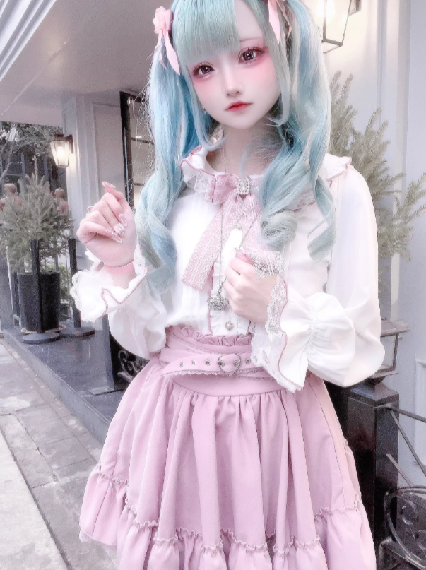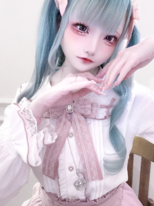 ホワイトとピンクのロリータボンネットチョーカー