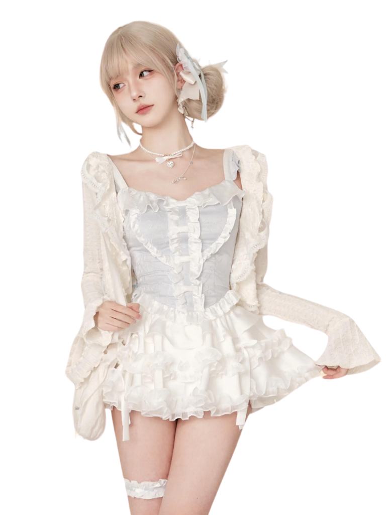 エルフサスペンダースカートトップブルーカーディガンホワイトケーキホワイト+サマー