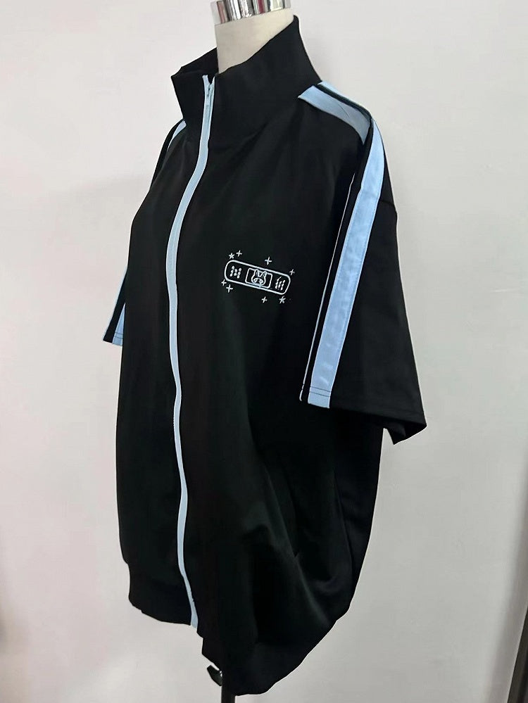 ブラック&ブルー 天使の快傑ウサギと星の刺繍Tシャツ