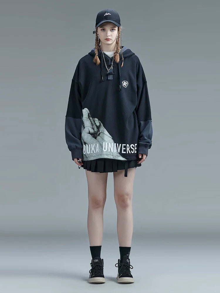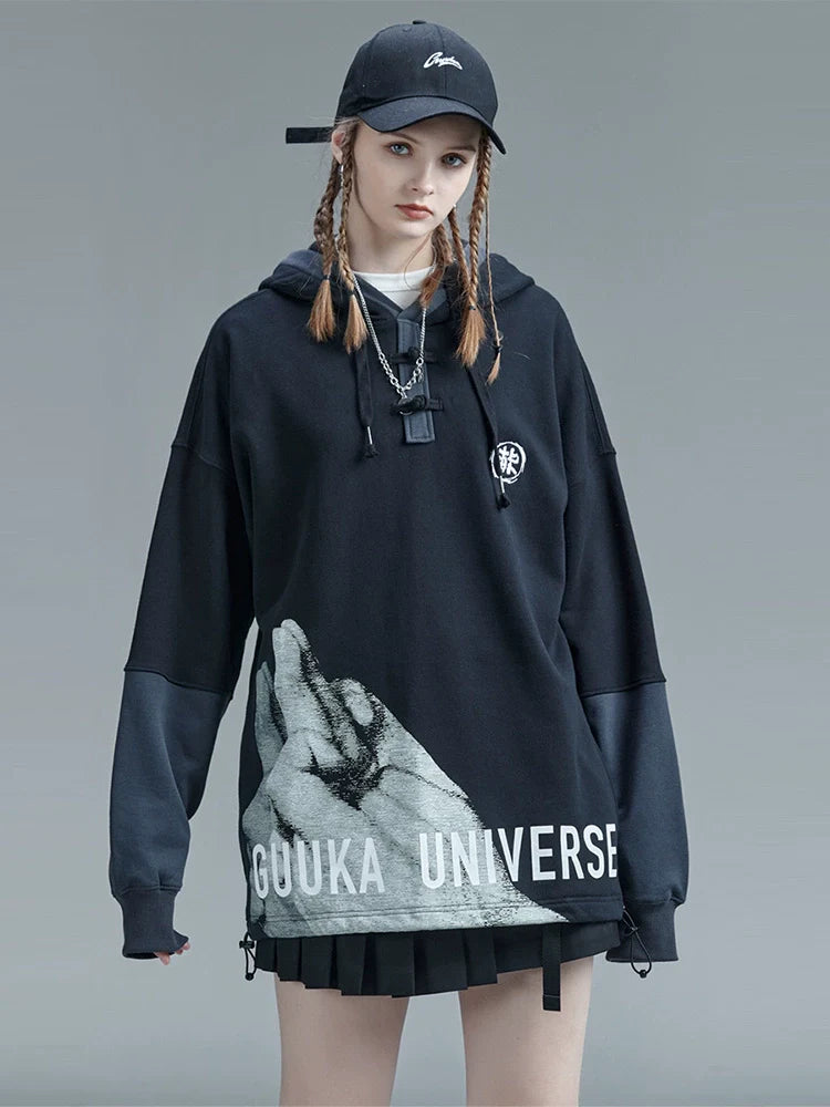 コントラストが効いたツーピースのフード付きスウェットシャツは、スタイリッシュで快適な着心地です。フェイクステッチのデザインが可愛らしさをプラスし、フードが保温性と保護性を高めます。心地よく着こなしながら、可愛く着こなせるのに最適です。