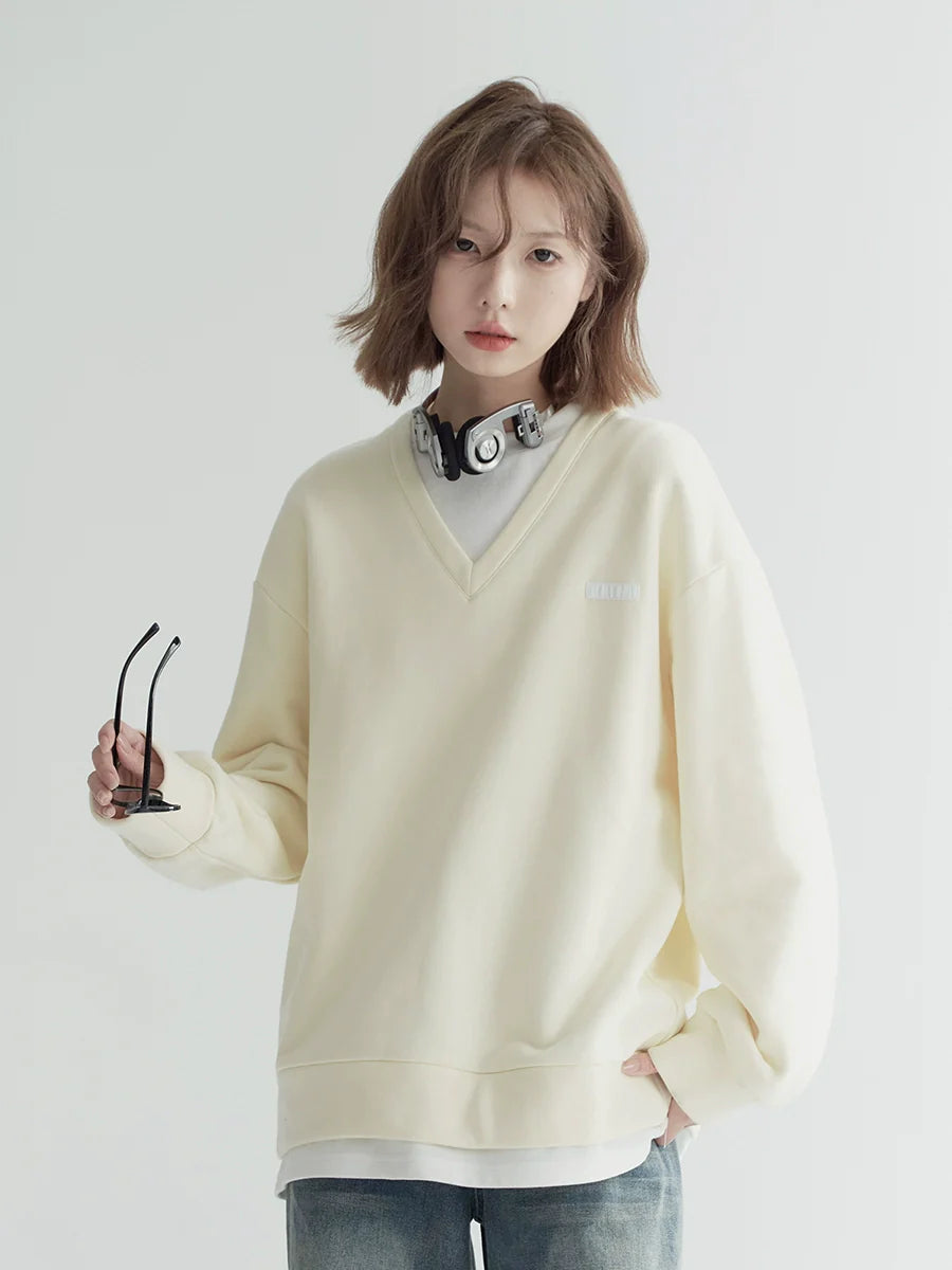 フェイクツーピース ライトカラー ルーズスウェットシャツ
