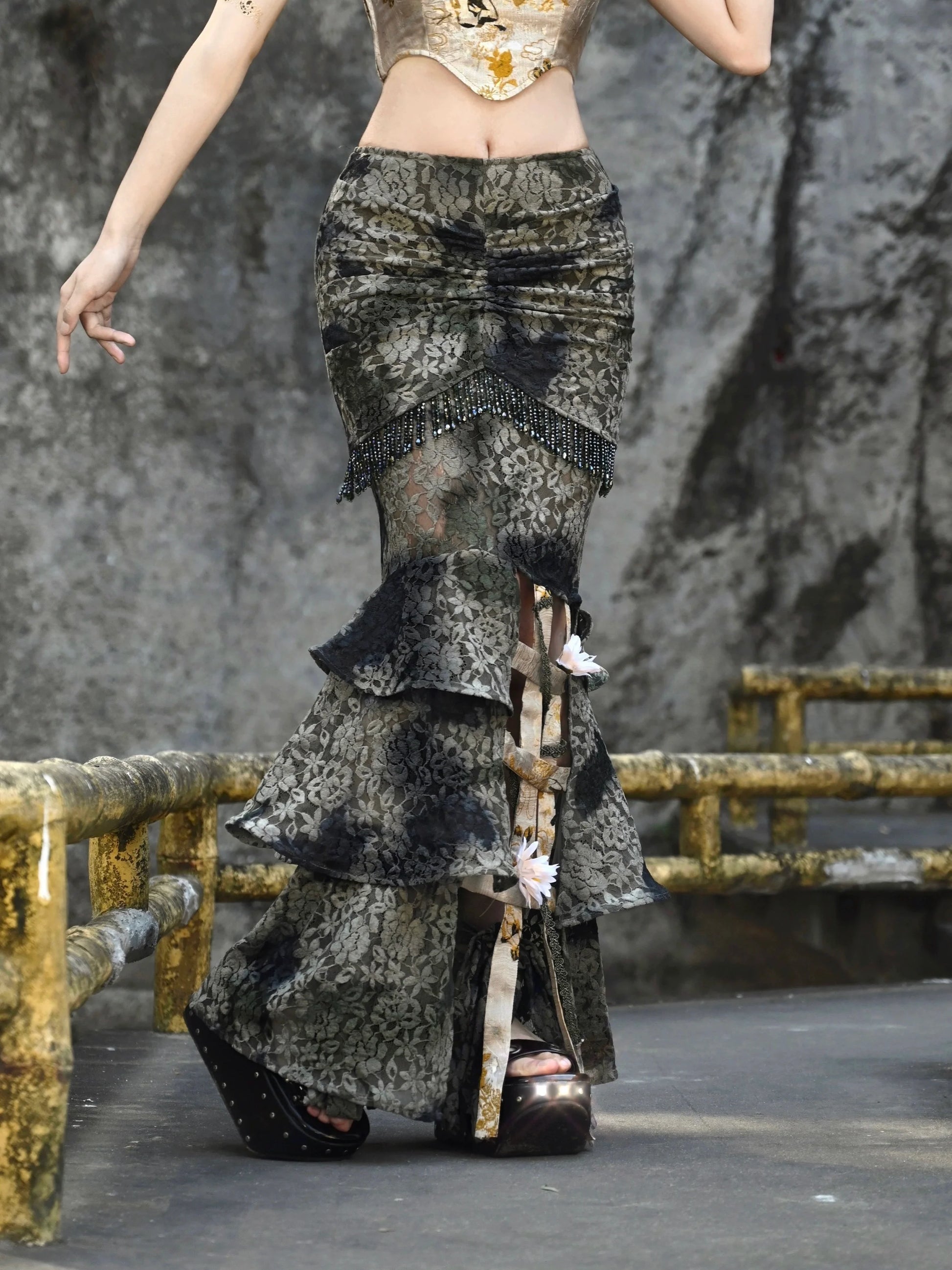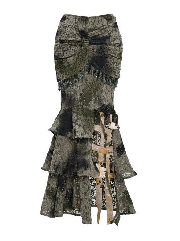 フェスティバルレースゲージドラゴンチャイナスカートバードタイダイスリム