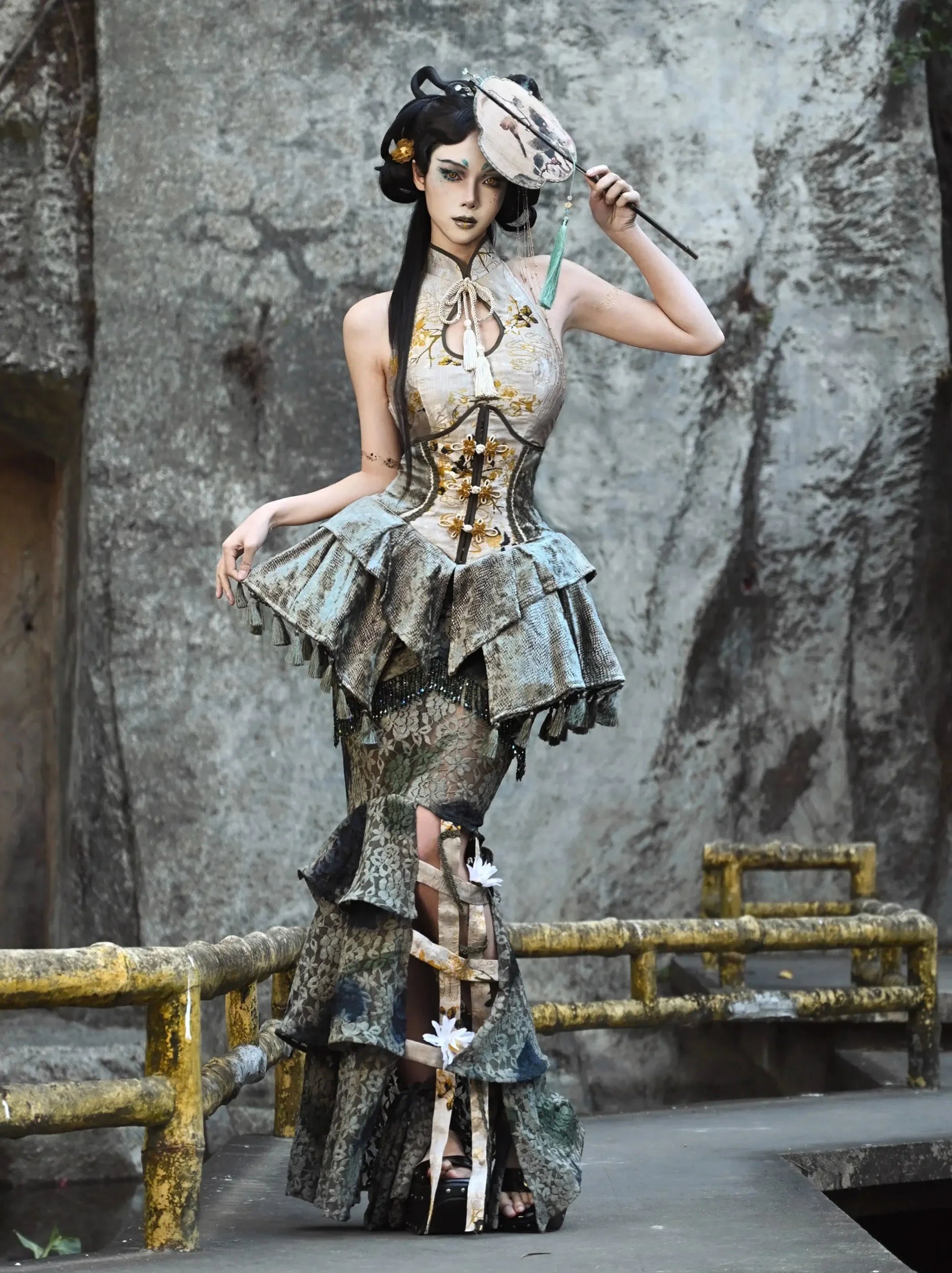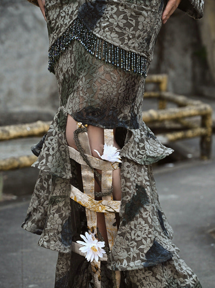 精巧で愛らしい「フェスティバルレースゲージ ドラゴンチャイナスカート バードタイダイスリム」で、自分を飾りましょう。繊細なレースのディテールとゴージャスなタイダイ柄が特徴のこのスカートは、どんなお祝いのシーンにもぴったりです。スリムフィットが体型を美しく見せ、魅力を添えます。