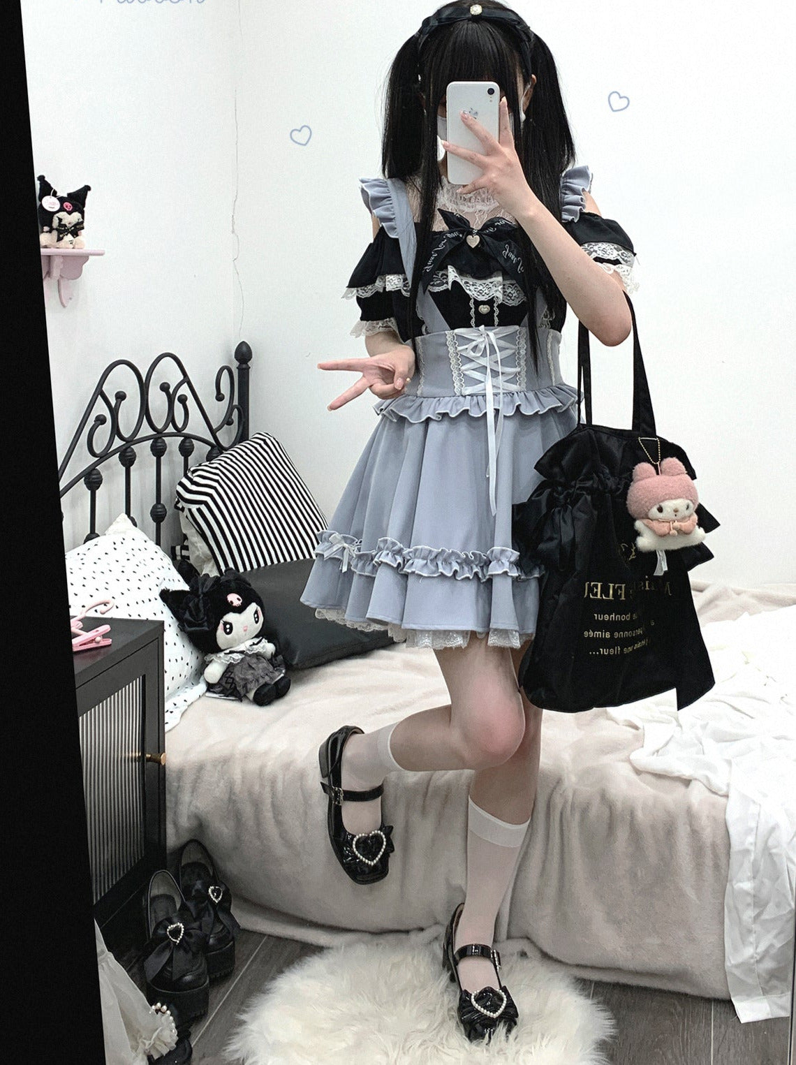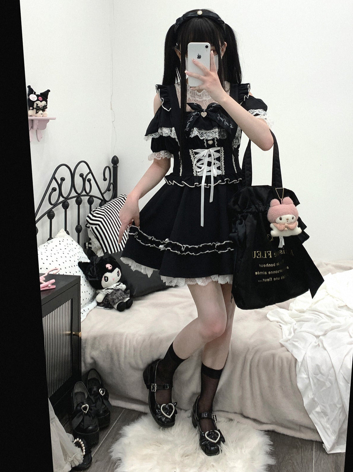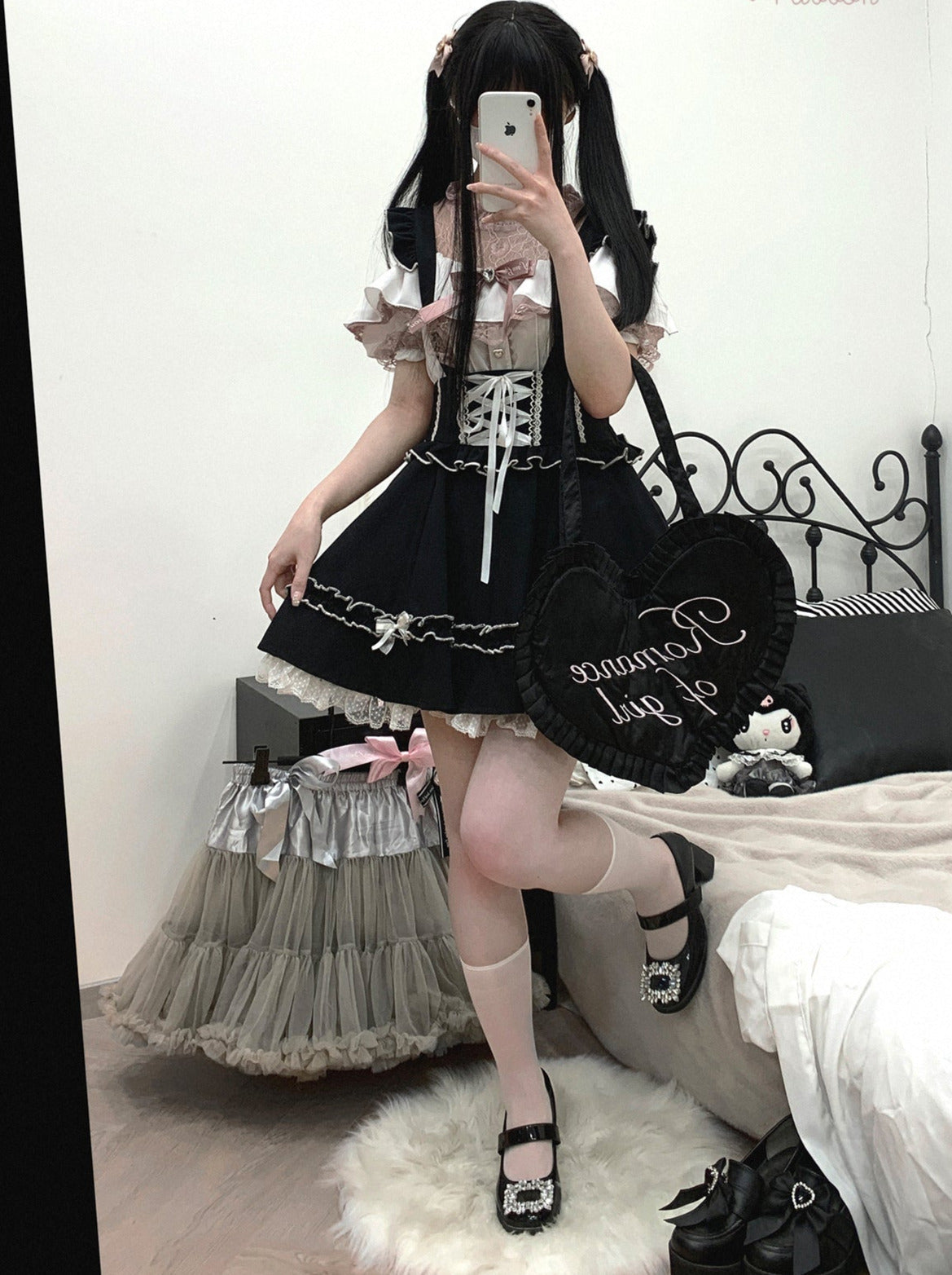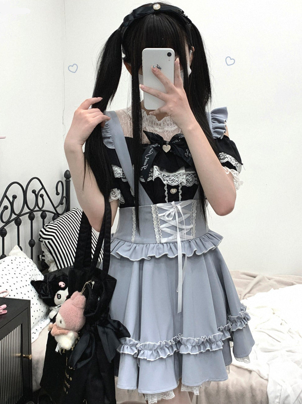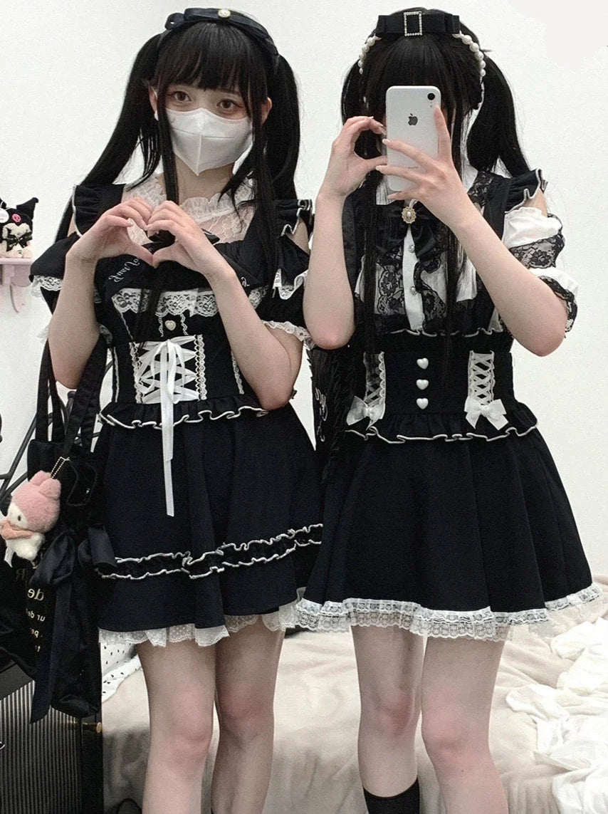 黒と白のオールドスクールロリータファッションドレス蝶結びロリータJSKセット