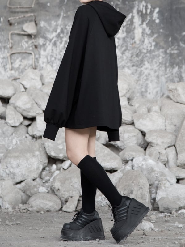 Dark Romance Gothic Black Loose Hoodie with Delicate Red Flock Butterfly Embroidery