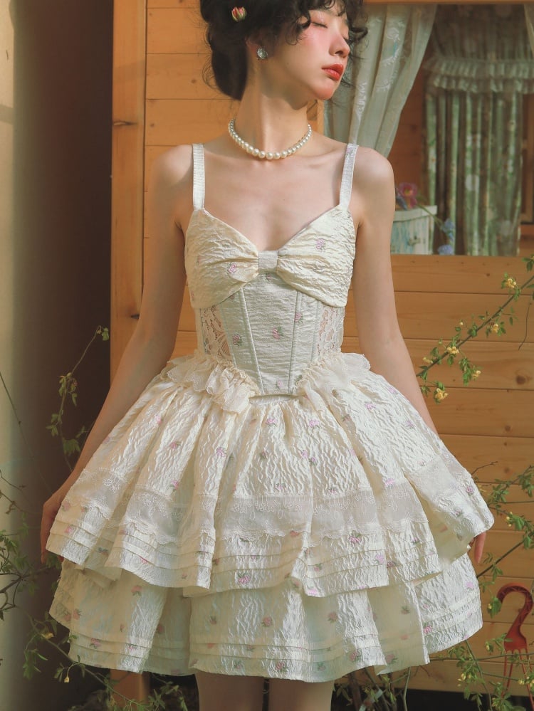 ピンクと白のオールドスクールロリータファッションドレス、蝶結びディテール、ロリータJSKセット
