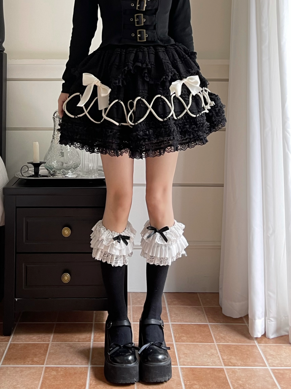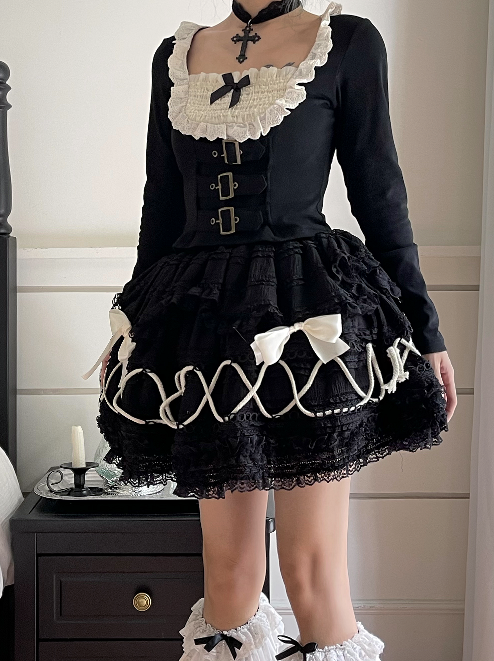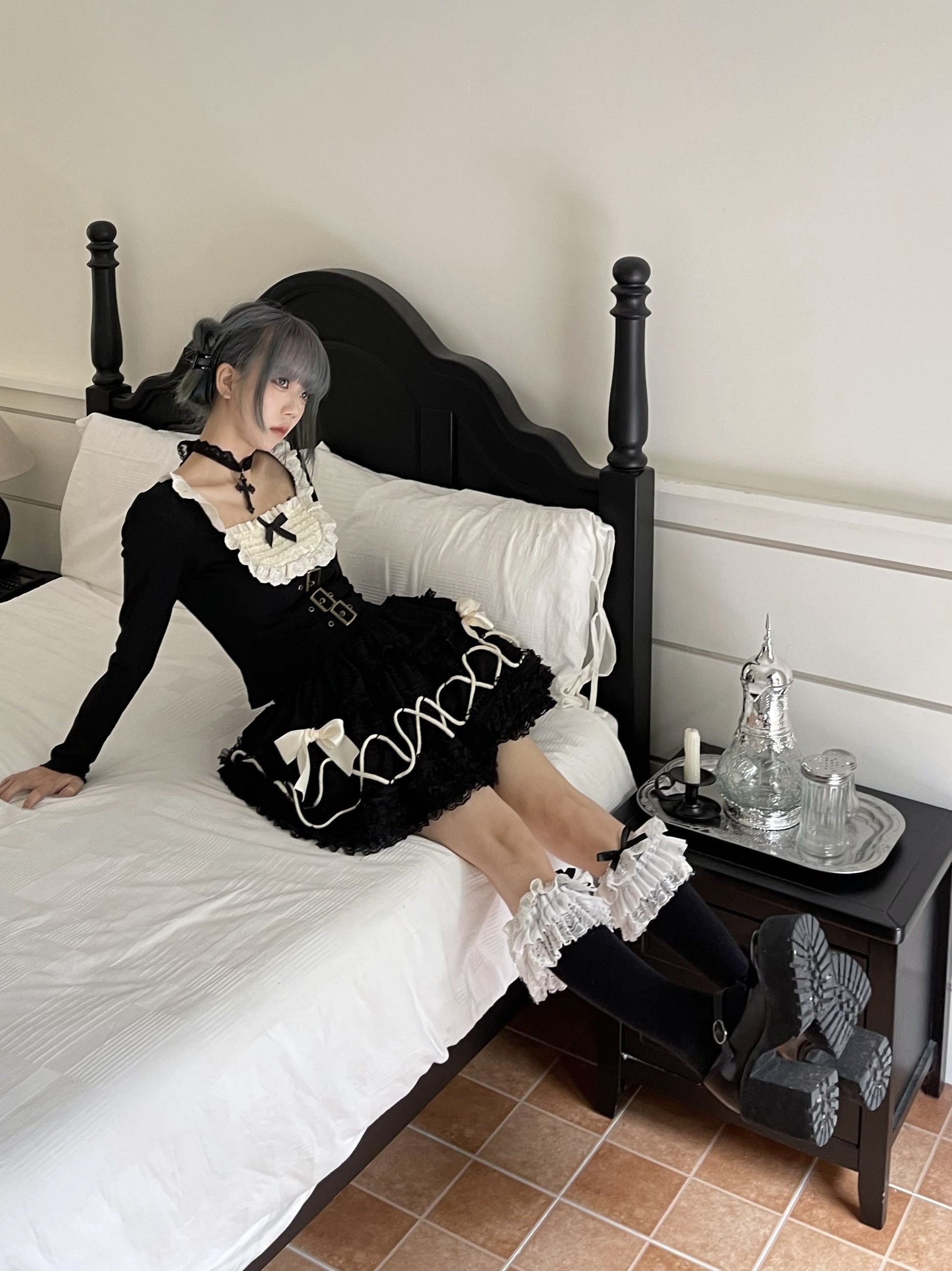 黒と白のオールドスクールロリータファッションドレス蝶結びロリータJSKセット