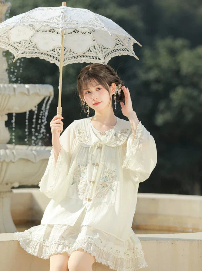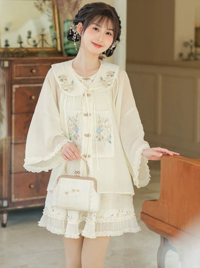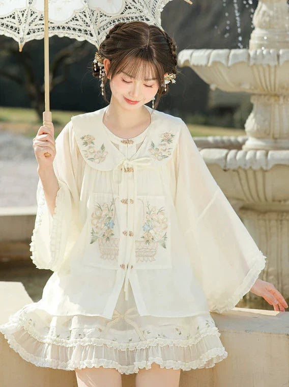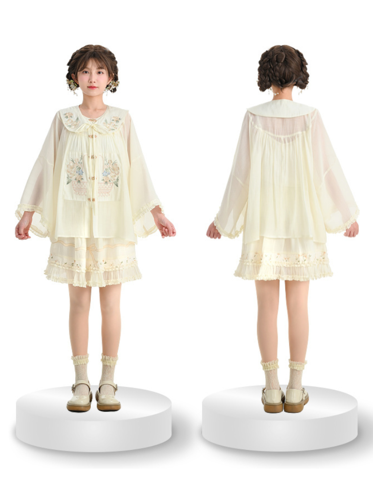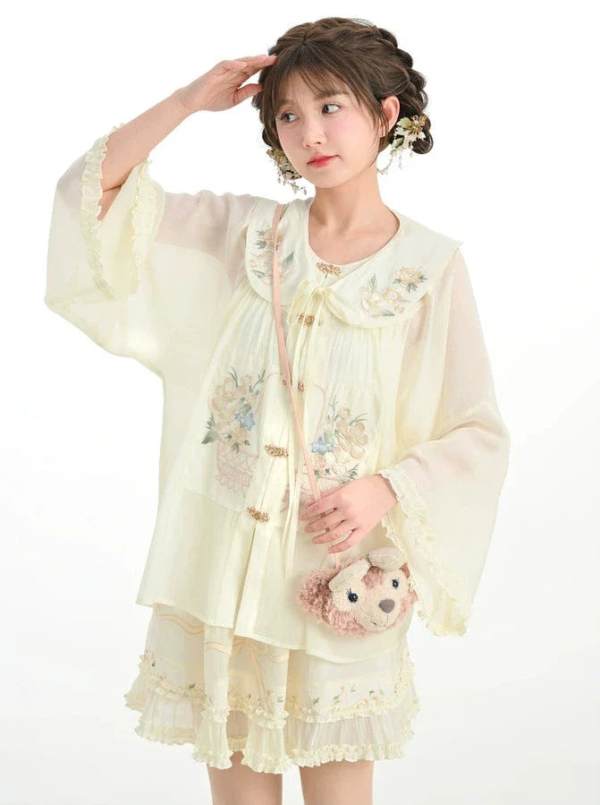 フリルシャツ付きチャイナカラースカート+フォレストシアー