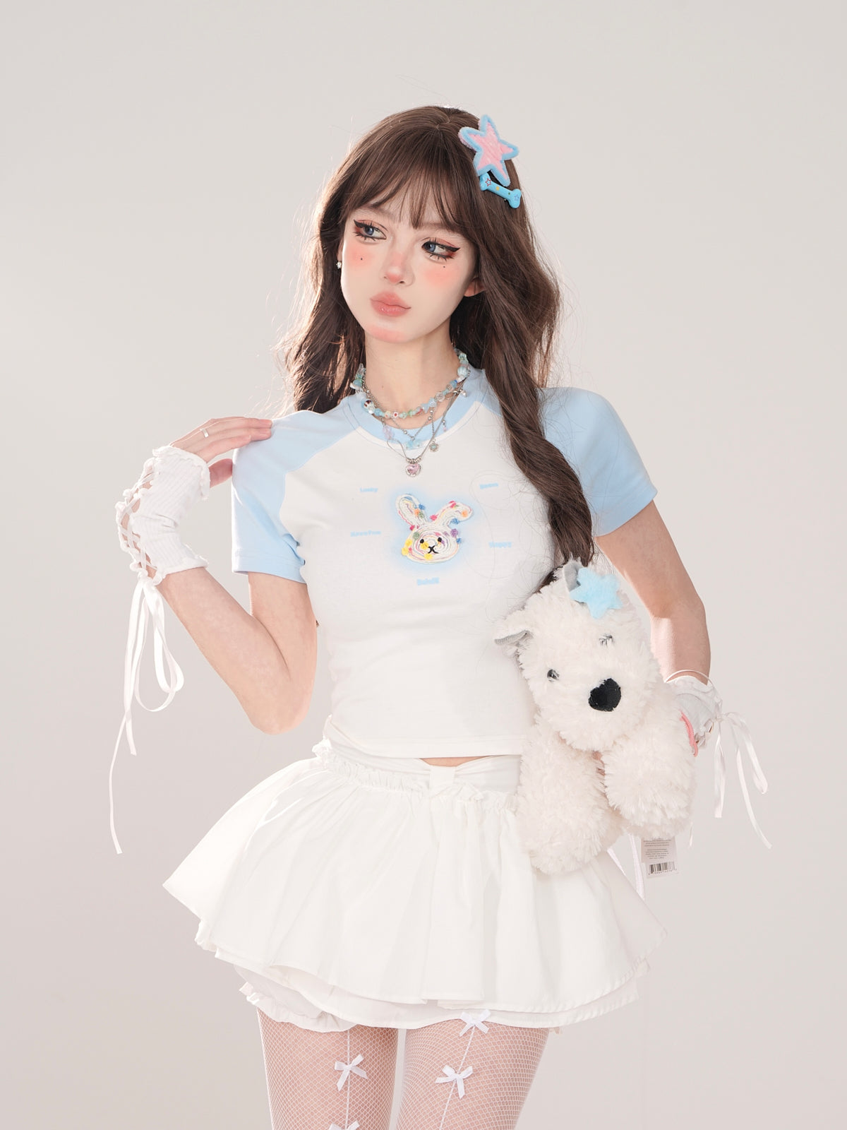 ガーリーなホワイトスカートとスイートなショートパンツ