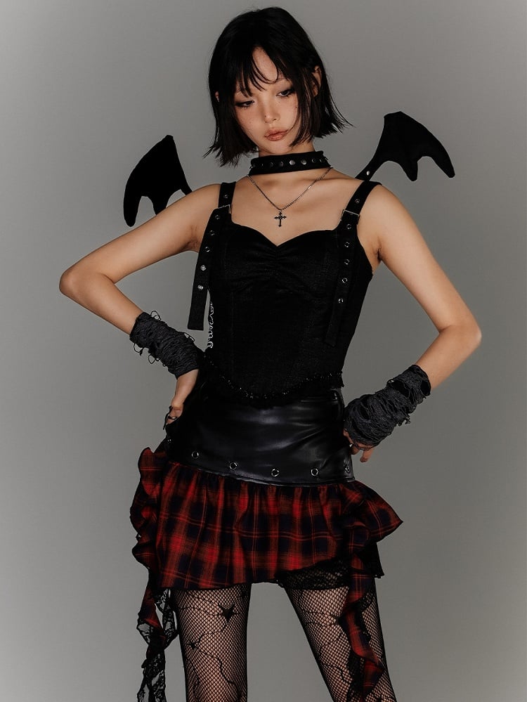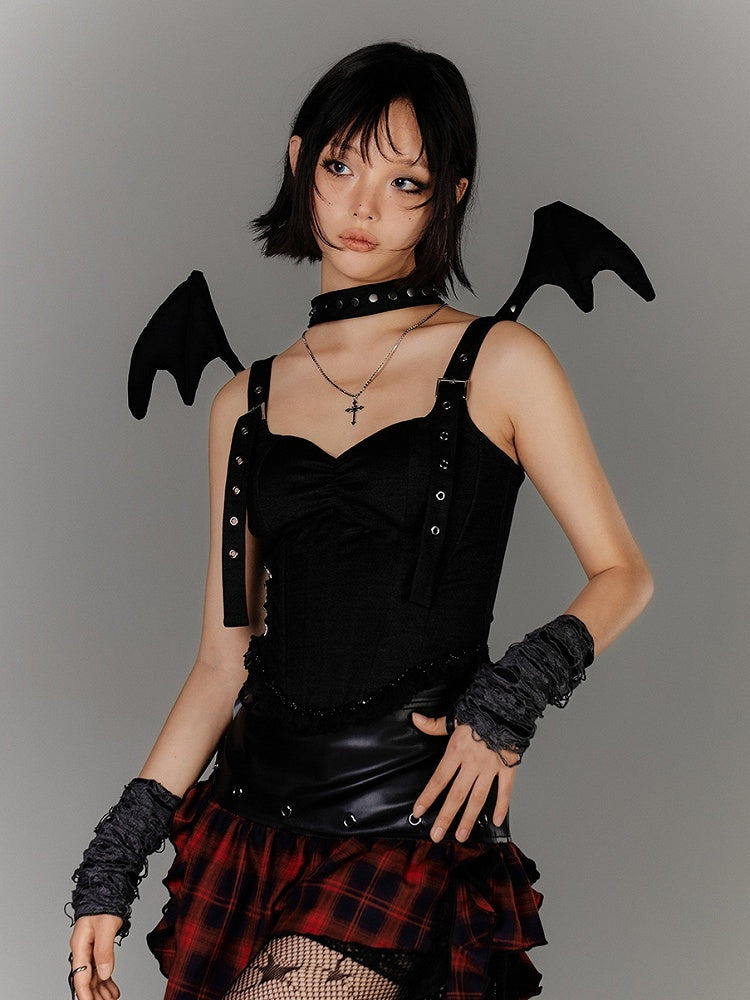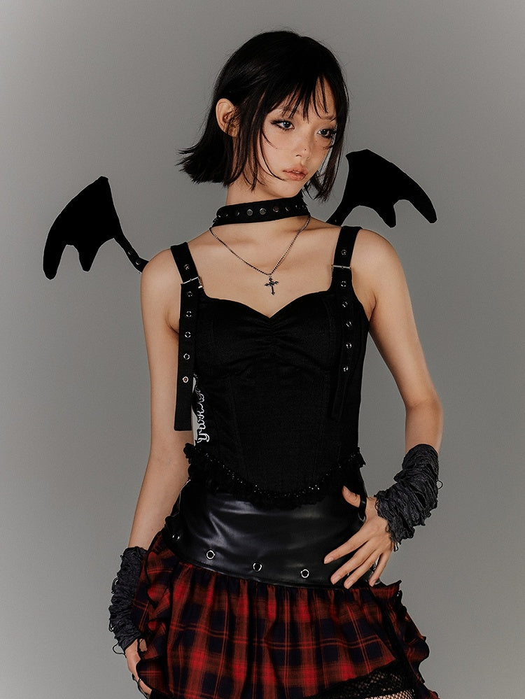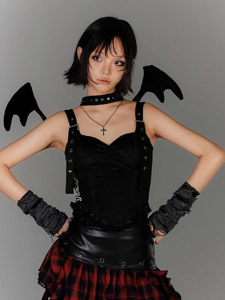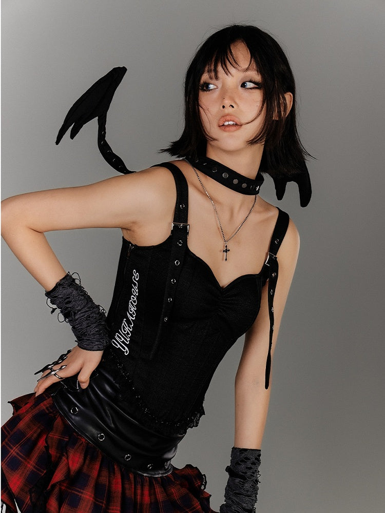 魅力的なノースリーブコルセットトップストラップブラックスウィートハートネックラインバックルショルダー