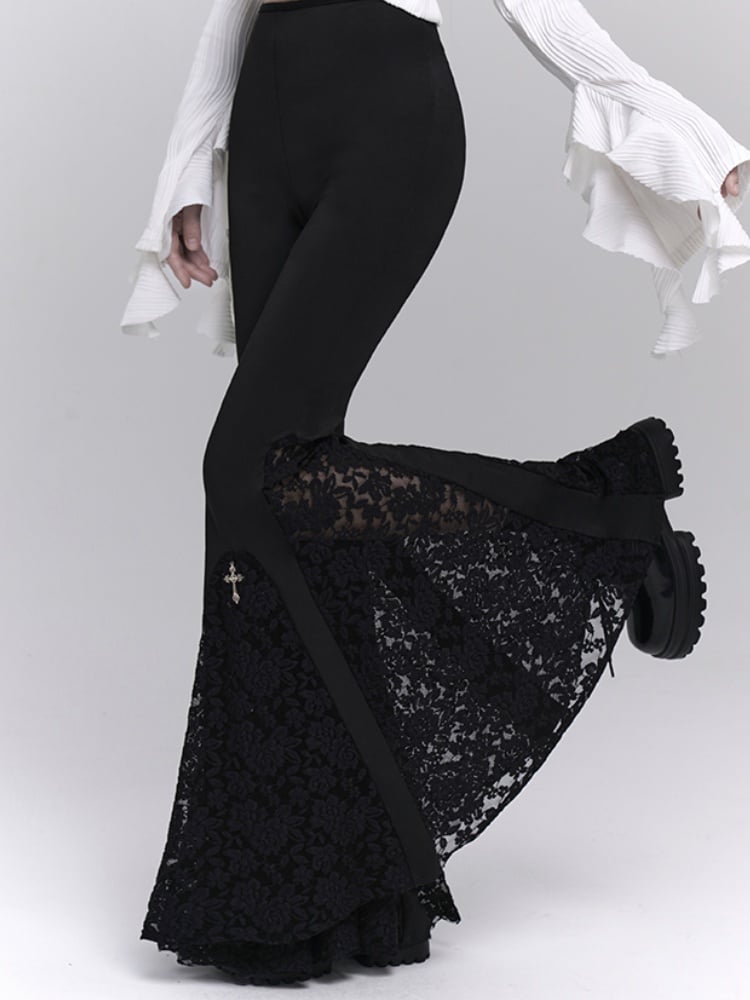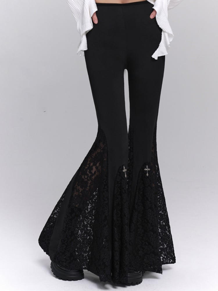 エレガントなゴシックブラッククロスレースフレアパンツで、ワンランク上のスタイルを演出しましょう。繊細なレースデザインが洗練された魅力を添え、フレアカットが体型を美しく見せ、快適なフィット感を実現。どんなコーディネートにも個性的でキュートなひねりをプラスできます。