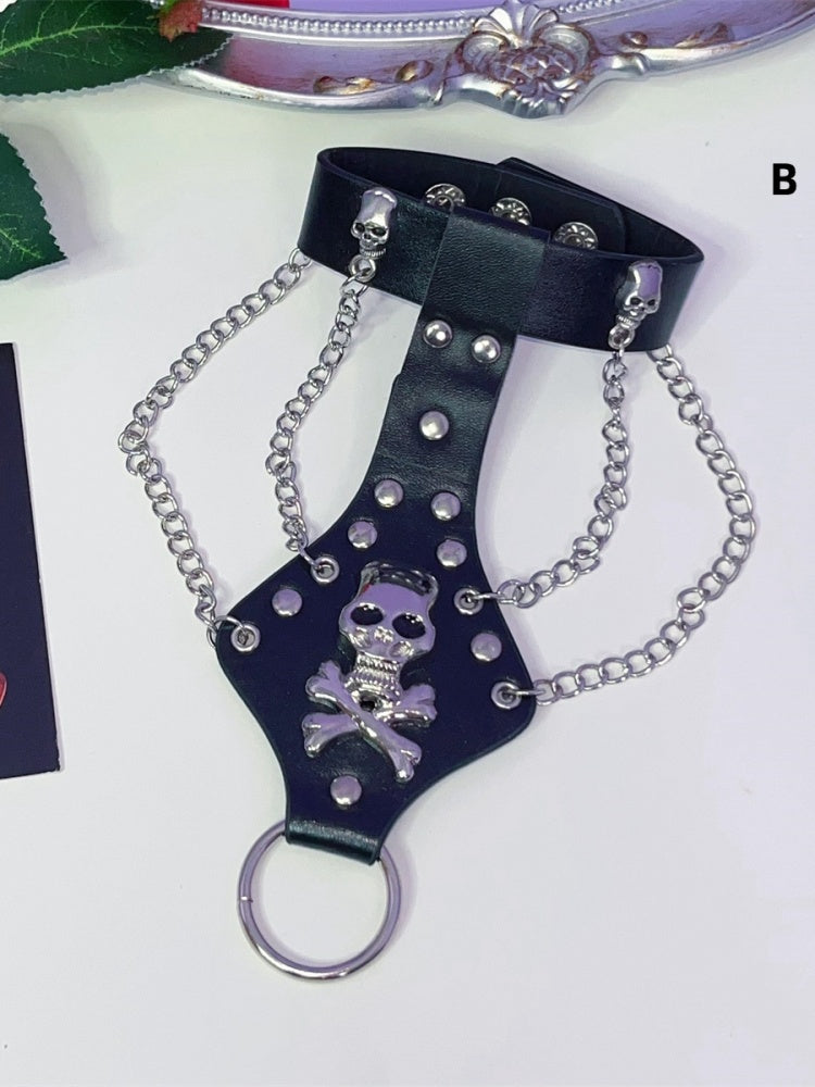 ゴシック スカル ブラック パンクロック リング ブレスレット チェーン付き