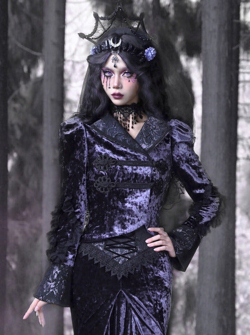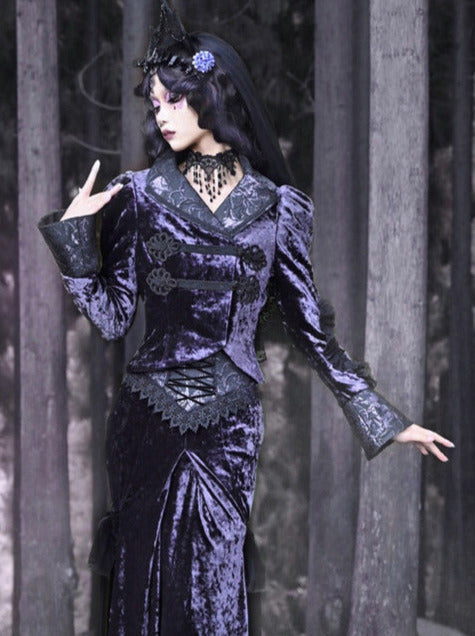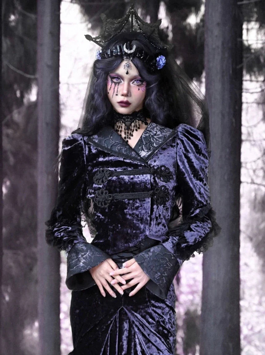 ゴシックベルベットカラースタイルジャケットヨーロピアンルナスリムスタンド