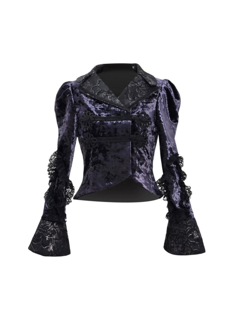 ゴシックなベルベットカラースタイルのジャケットは、スリムなスタンドデザインでヨーロピアンエレガンスを演出します。贅沢なベルベット素材が洗練された雰囲気を醸し出し、暖かさもキープ。キュートでありながらシックなステートメントピースをお探しの方にぴったりです。
