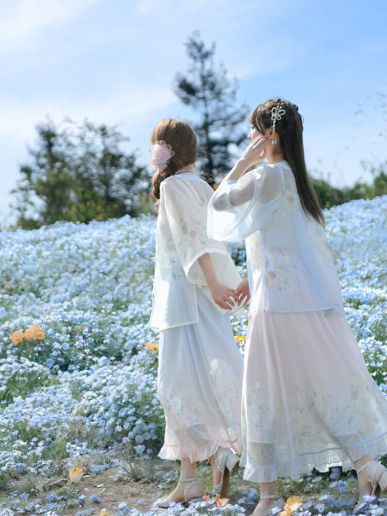 繊細なグラデーションデザインと遊び心のあるシフォンフラワーが特徴の、魅力的なカーディガンスカート。どんなワードローブにもぴったりです。流れるような生地と鮮やかな色彩が、遊び心のあるエレガンスをコーディネートにプラスし、人混みの中でもひときわ目を引く存在感を放ちます。