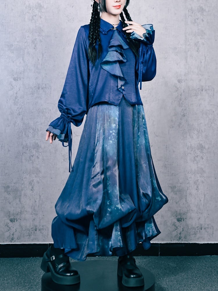Blue Gradient Jellyfish Print Bubble Skirt with Convertible Hem