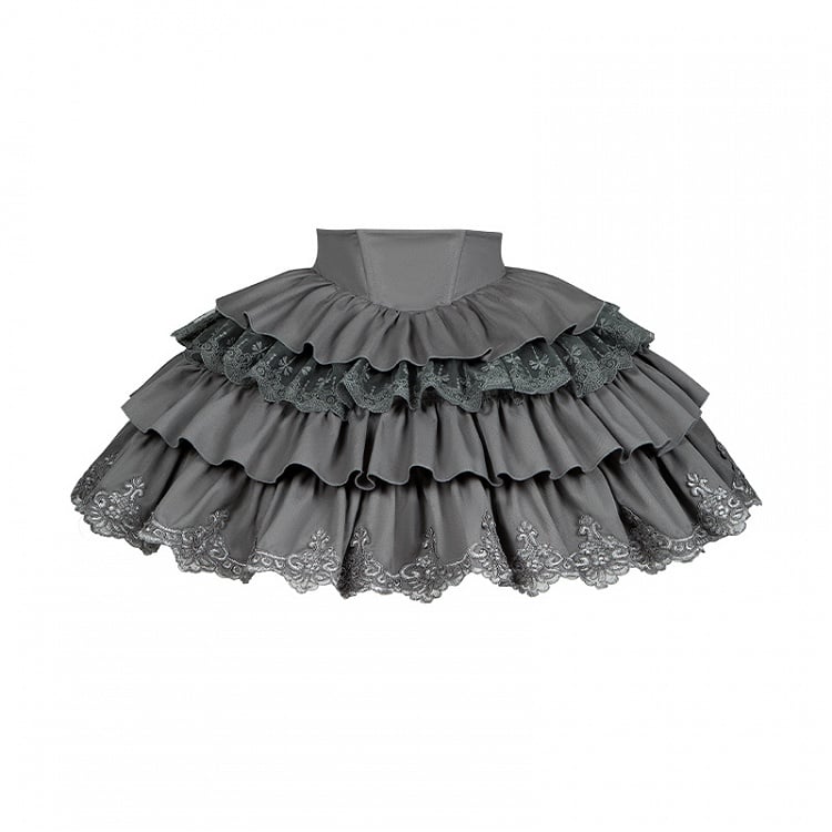 グレーのボーンウエストロリータ4層ティアードフリルスカート