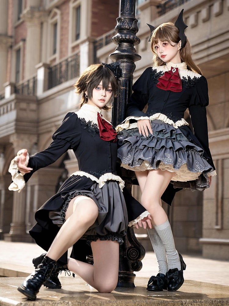 黒と白のオールドスクールロリータファッションドレス蝶結びロリータJSKセット