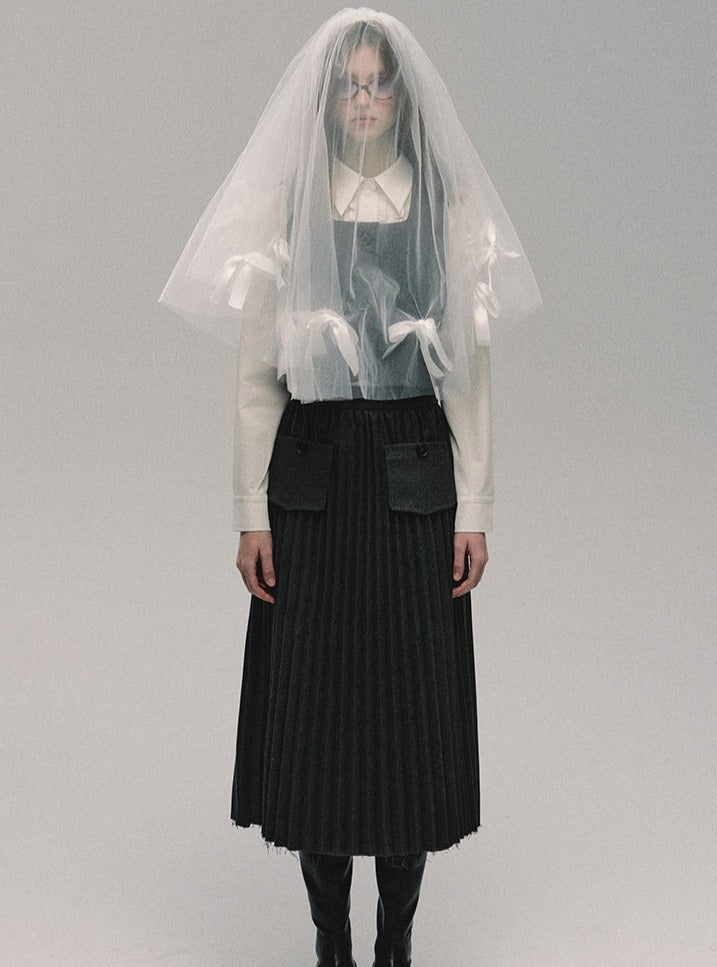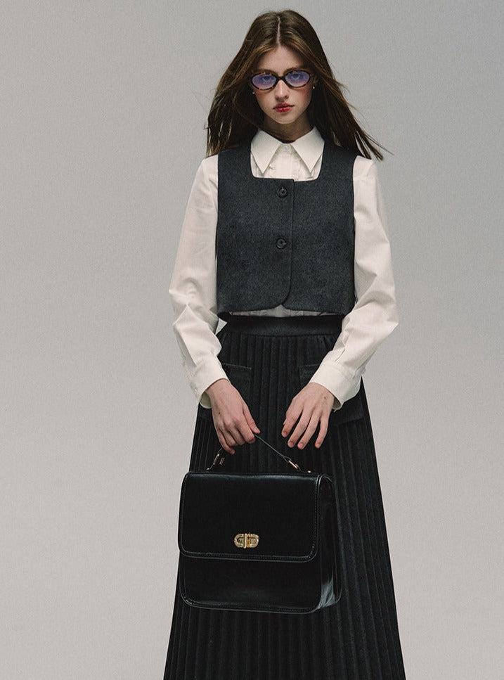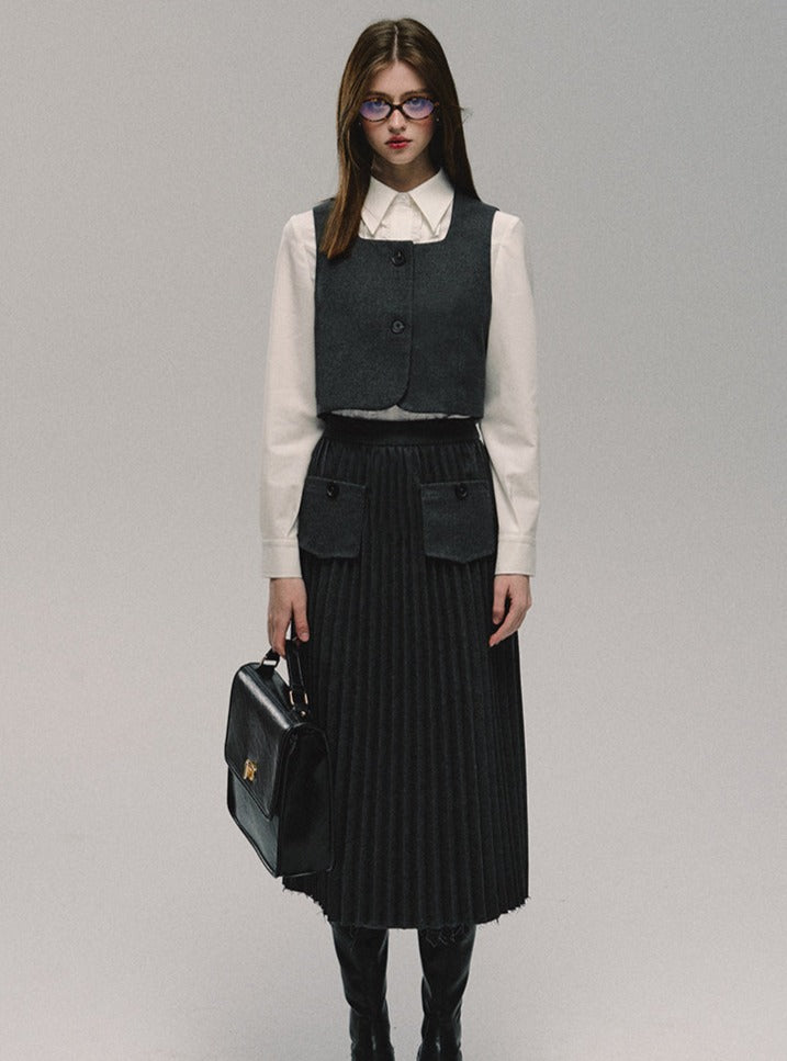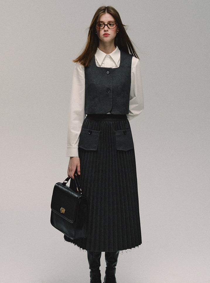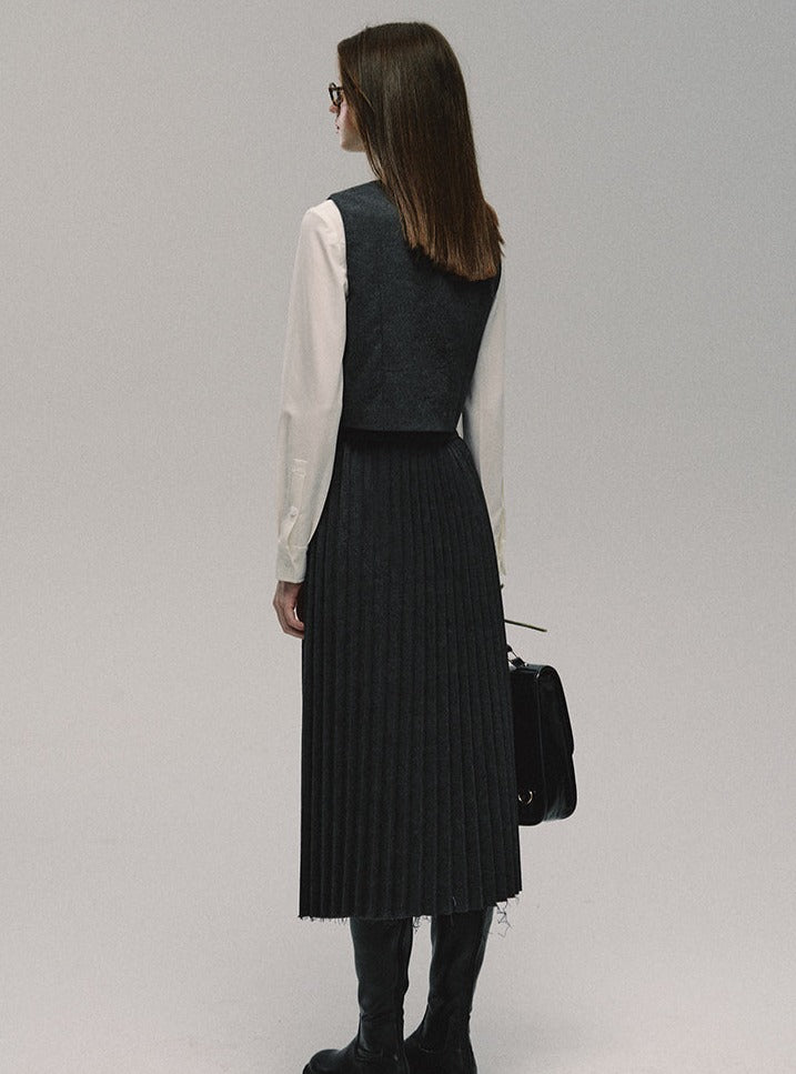 グレーのカレッジロングスカートベスト ベティ・バルカ プリーツ
