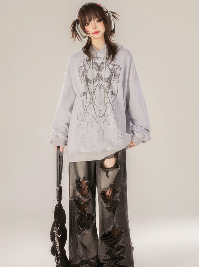グレーのフード付きパーカーダークオーバー