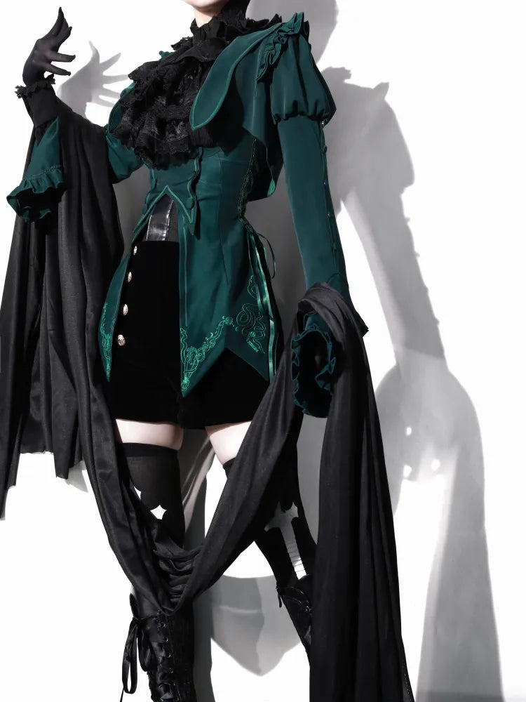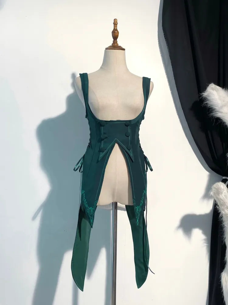 このキュートなグリーンのアンダーバストレースアップサイドウエストコートは、どんな装いにも甘さをプラス。サイドのレースアップディテールが体のラインを美しく包み込み、ウエストを強調してスタイルアップ効果も抜群。どんなシーンにもぴったりの、チャーミングなウエストコートで、アンサンブルを完成させましょう。