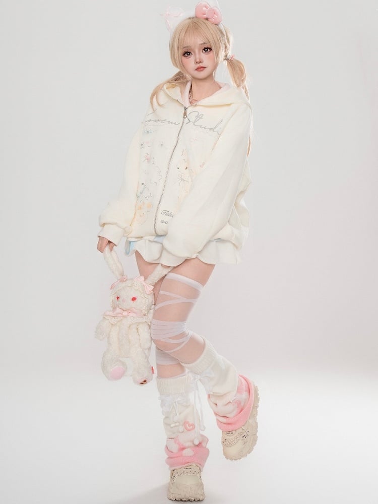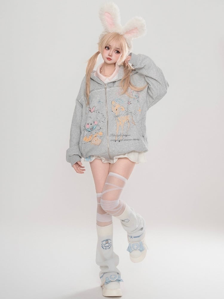 グレー/ホワイトのカートゥーンアニマルプリント スプリングジップパーカーで、暖かくキュートな着こなしを。柔らかな素材で仕立てたこのパーカーは、肌寒い日にぴったり。愛らしいアニマルプリントが、どんなコーディネートにも遊び心をプラス。ジップアップして、この季節もスタイリッシュに。