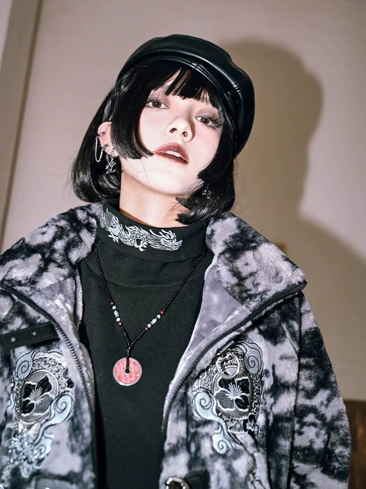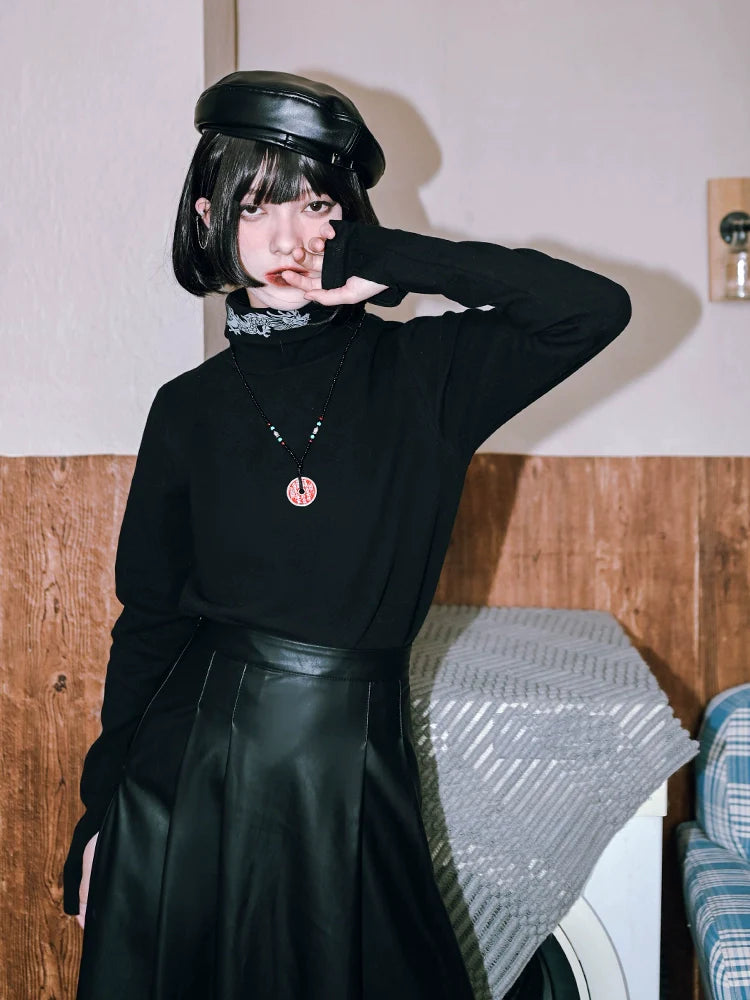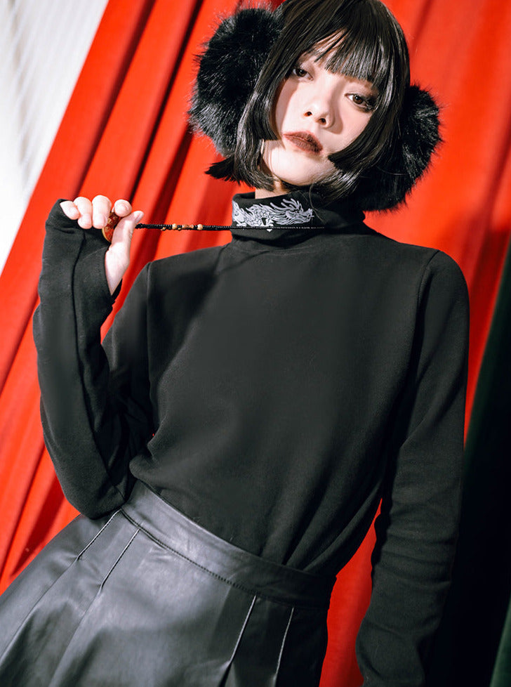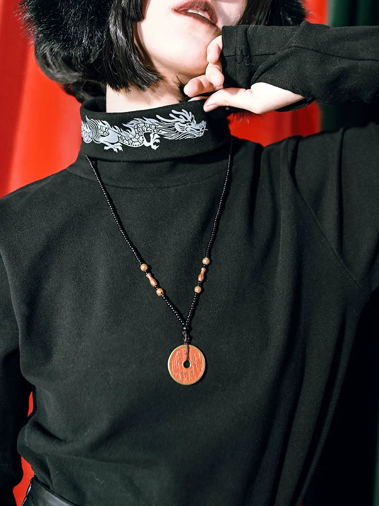 ハイネックにユニークなドラゴンのプリントが施された、愛らしいシャツです。遊び心のあるこのアイテムで、ワードローブに遊び心を加えましょう。